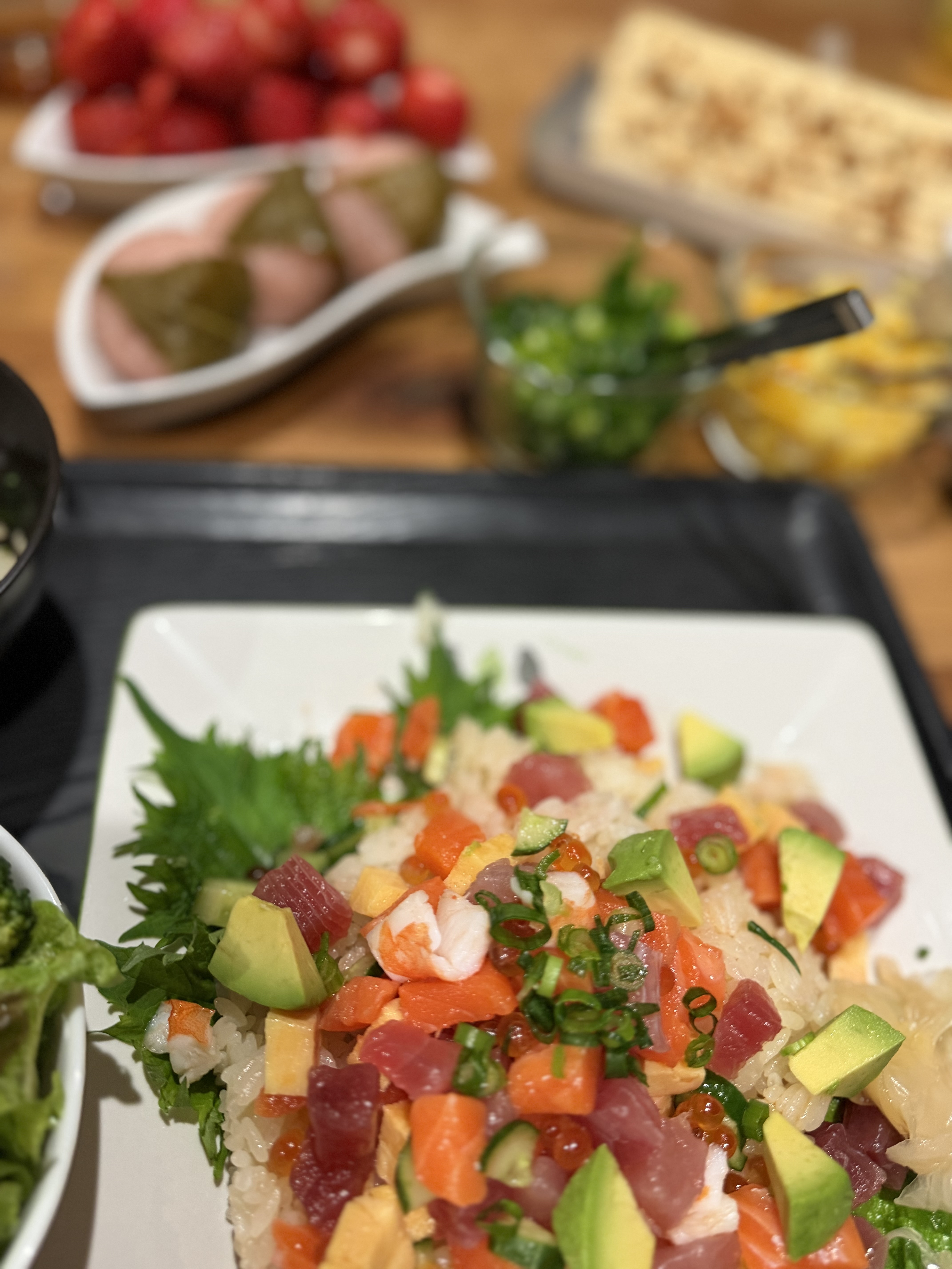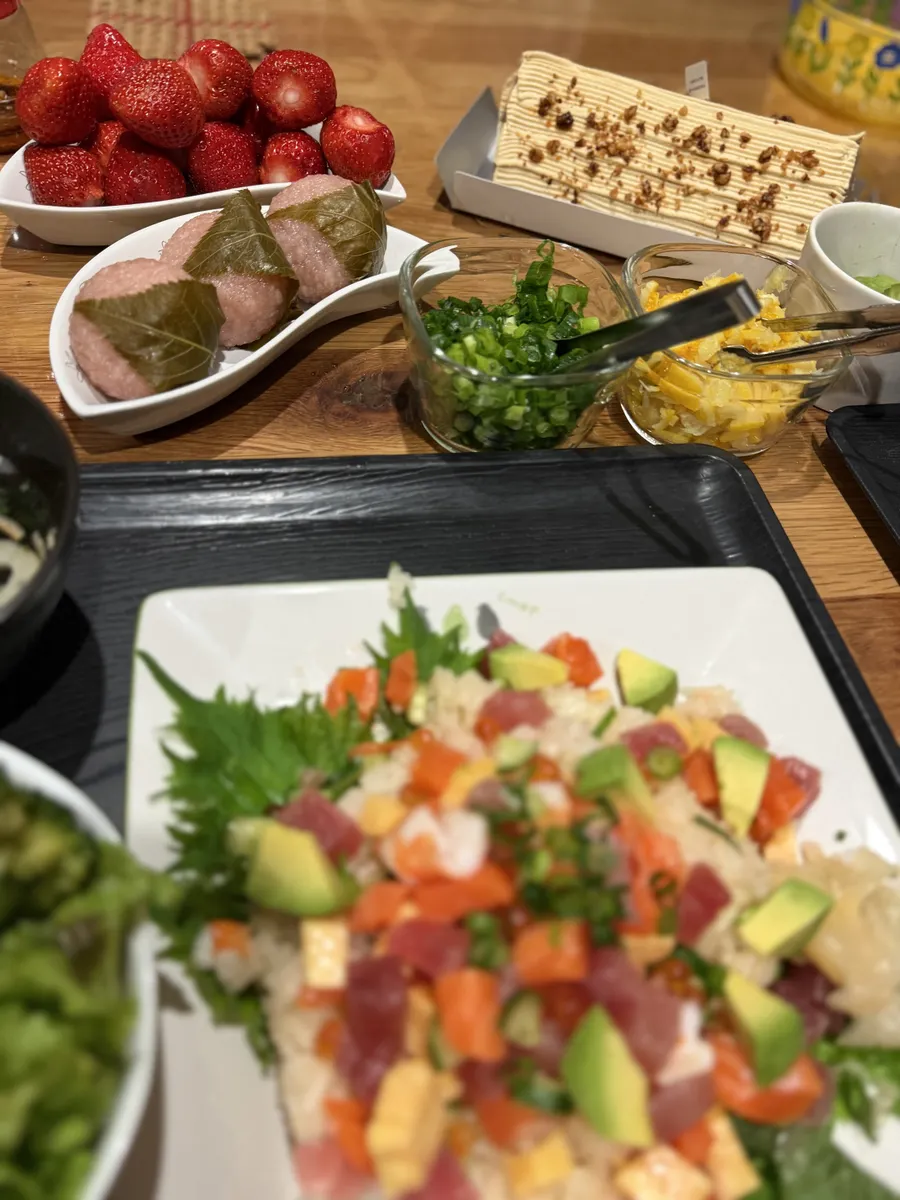 投稿を表示海鮮チラシ寿司、さくら餅、ケーキとみんな美味しいですね😋🎶