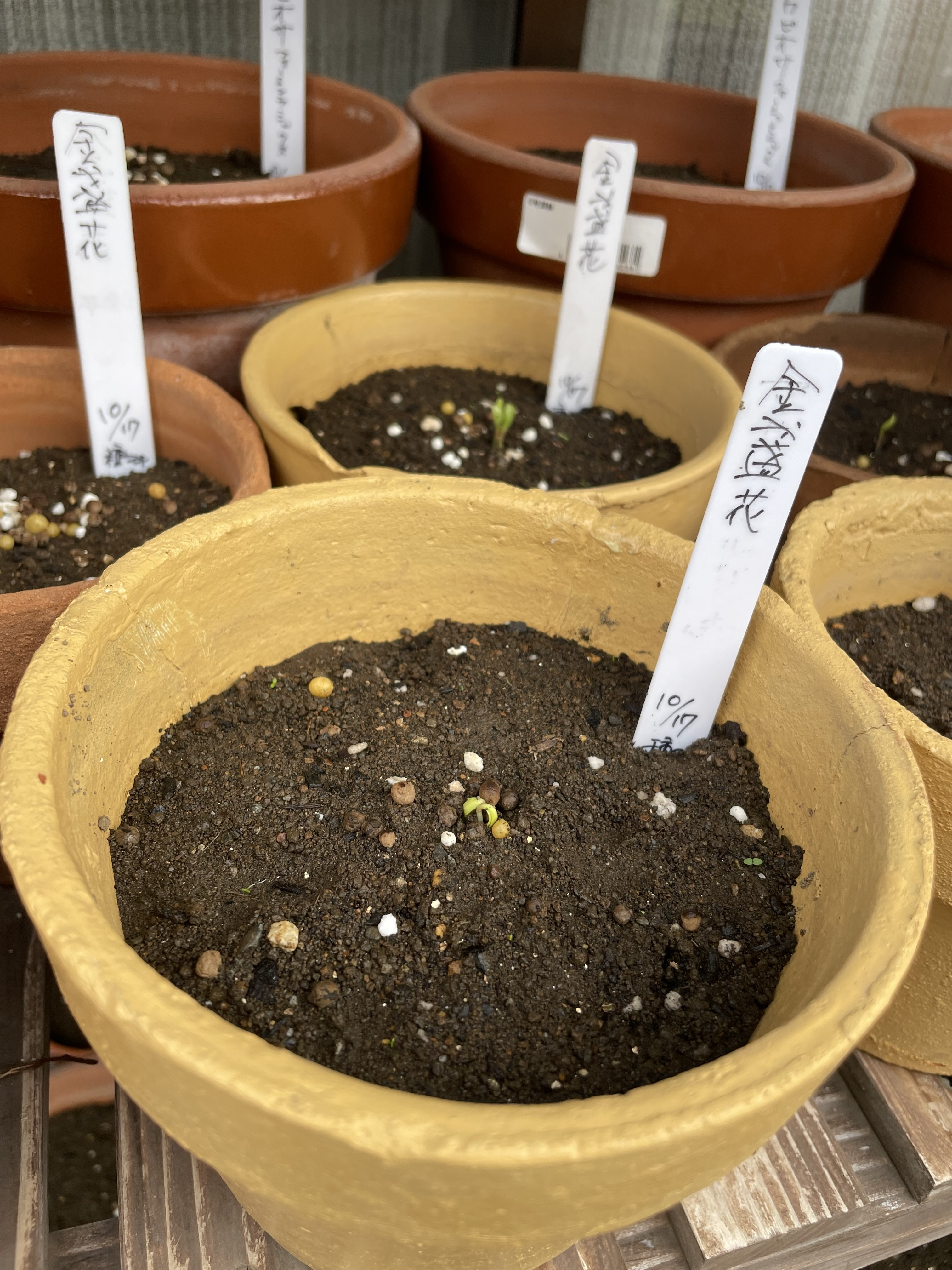 先週種蒔きした(リンク→ https://diy-square.cainz.com/announcements/wpvvbm7opbrrn4bj )金盞花、発芽しました。
