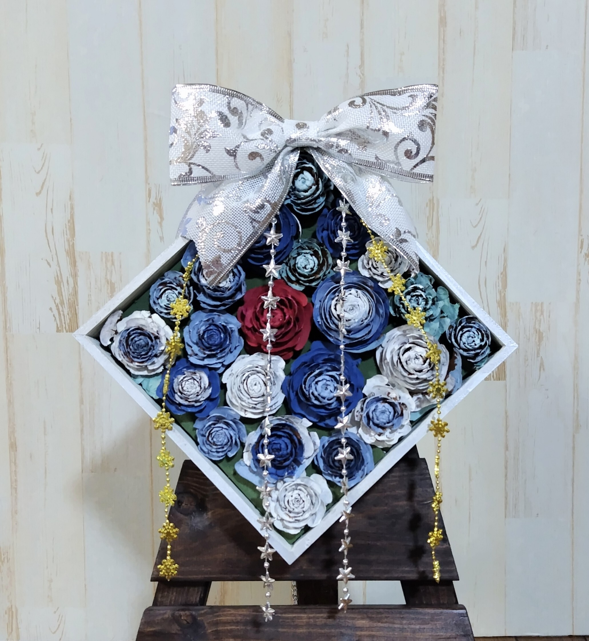 投稿を表示ブルー系でまとめてワンポイントに赤いシダーローズ素敵です🤩