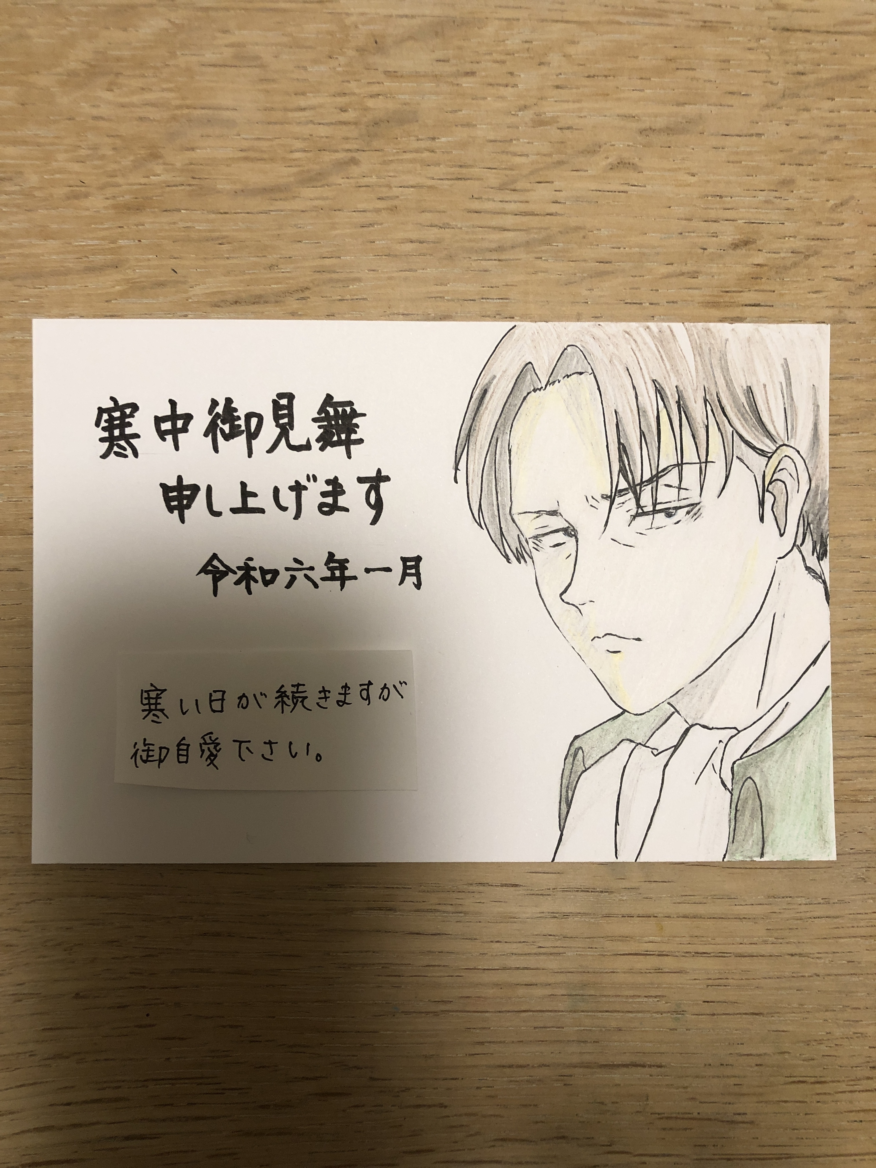 トップ > その他 > 寒中見舞い らんらん 2024/01/17 07:57 寒中見舞い 昨晩、深夜まで作業して寒中見舞いを作成しました。 筆文字が劇的に下手くそになっていましたがww、 リヴァイ兵長はこの1か月間、カイロに描きまくったので、今回のはどう見ても兵長にしか見えないな、と思います。 子どものころ、お友達に喜んでもらえるようにと、一枚一枚、年賀状を手書きで書いていたのを思い出しました。 今年はプリントごっこ方式に、一枚の原画を無地のインクジェット紙にコピー。 今日、投函しにいきます。 時節柄、squareのみなさまもご自愛くださいませ。 いいね 共有する 共有する X LINE リンクをコピー コメントする 2 件の返信 (新着順) ミュートしたユーザーの投稿です。 投稿を表示 ミッチー 2024/01/18 08:38 色が入るとまたよくなりますね👍️ 私が貰ったらフォトスタンドに入れて毎日拝みます😆 いいね 返信する ミュートしたユーザーの投稿です。 投稿を表示 らんらん 2024/01/18 09:40 ミッチー ありがとうございます😊 私もミッチーさんには送って差し上げたいです😆 いいね 返信する ミュートしたユーザーの投稿です。 投稿を表示 ミッチー 2024/01/19 07:00 らんらん 嬉しいお言葉(感涙) いいね 返信する ミュートしたユーザーの投稿です。 投稿を表示 🐰 さ び う さ 🐰 2024/01/17 11:17 らんらん い〜な〜、こんなに上手に描かれたハガキを貰えるなんて📬💕 プロで仕事されてたんですか? あのぉ…、お願いがあるのですが、 ヴァイオレットエバーガーデンの ヴァイオレットちゃん(『お客様がお望みなら どこでも駆け付けます。 自動手記人形サービス ヴァイオレット・エヴァーガーデンです。』)のセリフ付きと、 はたらく細胞の血小板ちゃん…を それぞれリクエストしたいのですが😅 急ぎませんので、らんらんさんの 時間がある時で構いません🕰️ 描いて頂けないでしょうか?😅 🙏 🙏 🙏 🙏 🙏 🙏 🙏 🙏 🙏 🙏 🙏 🙏 図々しくてゴメンナサイ💦 いいね 返信する ミュートしたユーザーの投稿です。 投稿を表示 らんらん 2024/01/17 19:48 🐰 さ び う さ 🐰 🐰さびうさ🐰さん、 リクエストありがとうございます😊 プロのようにサラサラと上手に描ければいいのですが、理論はめちゃくちゃ、消しては直しを繰り返す、ど素人の私でよければ…ですが、リクエスト、喜んでトライさせて頂きます☺️ バイオレットエバーガーデン、京アニの画像が美しいですよねー✨✨✨ハードル高そうなんで挫折するかもですが… はたらく細胞の血小板はカイロキャンペーンに投稿してみようかと思います。血小板、可愛いですよね。たくさんの数は描けませんけど…😆 (両方知ってるアニメでよかった…😆) いいね 返信する ミュートしたユーザーの投稿です。 投稿を表示 🐰 さ び う さ 🐰 2024/01/17 20:05 らんらん らんらんさん、ありがとうございます😊 無理せず描いて頂けたらと思っています✨ 京アニ…と言えば、 年明けに『響け!ユーフォニアム』が 放送されていて、ハマってしまいました😆💖 最初、京アニだと知らずに見ていて、 面白かったので、最後のテロップまで 見ていたら、京アニでした‼️ さすが京アニ‼️と思ったのと同時に、響けユーフォニアムって10年前に作成されたアニメだから、悲しい出来事🔥の中に、携わった方がいらしたのではないか…って思ったら悲しくなりました😢(聲の形も京アニですよね)👂 話がそれてスミマセン🙏 それでは、宜しくお願い致します🤗 追伸、私の作った、バイオレットちゃんの作品です😅宜しかったら見てやってください😅 https://diy-square.cainz.com/announcements/wz1a5wvgktptjmdu いいね 返信する ミュートしたユーザーの投稿です。 投稿を表示 らんらん 2024/01/17 21:06 🐰 さ び う さ 🐰 さびうささん! なんとすばらしいバイオレットではないですか!「推し」への愛と情熱❤️🔥を感じるこのような作品をすでに製作されていたとは!❤️✨✨✨ 一昨年の年末、TVで放送された劇場版を見て、ラスト、バイオレットと一緒に大泣きしたのを思いだしましたよー😭 (ちなみに私の好きなキャラは、リオン(1回しか出てこないけど)と、ベネディクトです😆) 聲の形はだいぶ前に見ましたが、響けユーフォニアムはストーリーも全く知らないです。京アニなんですね!また時間のある時にアマプラで見れないか、探してみます😊 いいね 返信する ミュートしたユーザーの投稿です。 投稿を表示 🐰 さ び う さ 🐰 2024/01/17 21:50 らんらん らんらんさん、見て頂き、ありがとうございます😊 頑張って作りました😅 実はヴァイオレットのハイヒールが 売っていて買ってしまいました😅 履かないのに👠(スカートも欲しい😅) 響け!ユーフォニアム、見てみてね💖 私のコメントに お付き合い頂き、 ありがとうございました😊💖😊💖😊 いいね 返信する