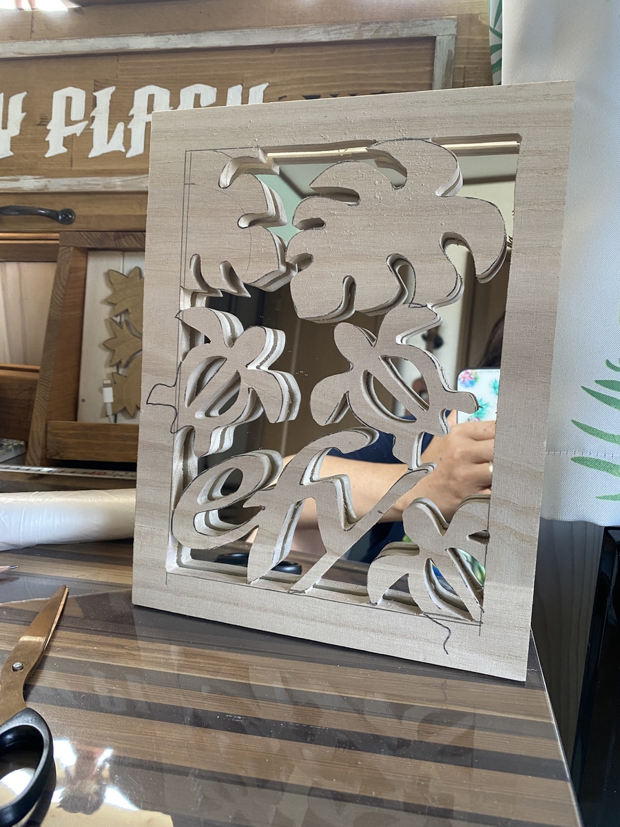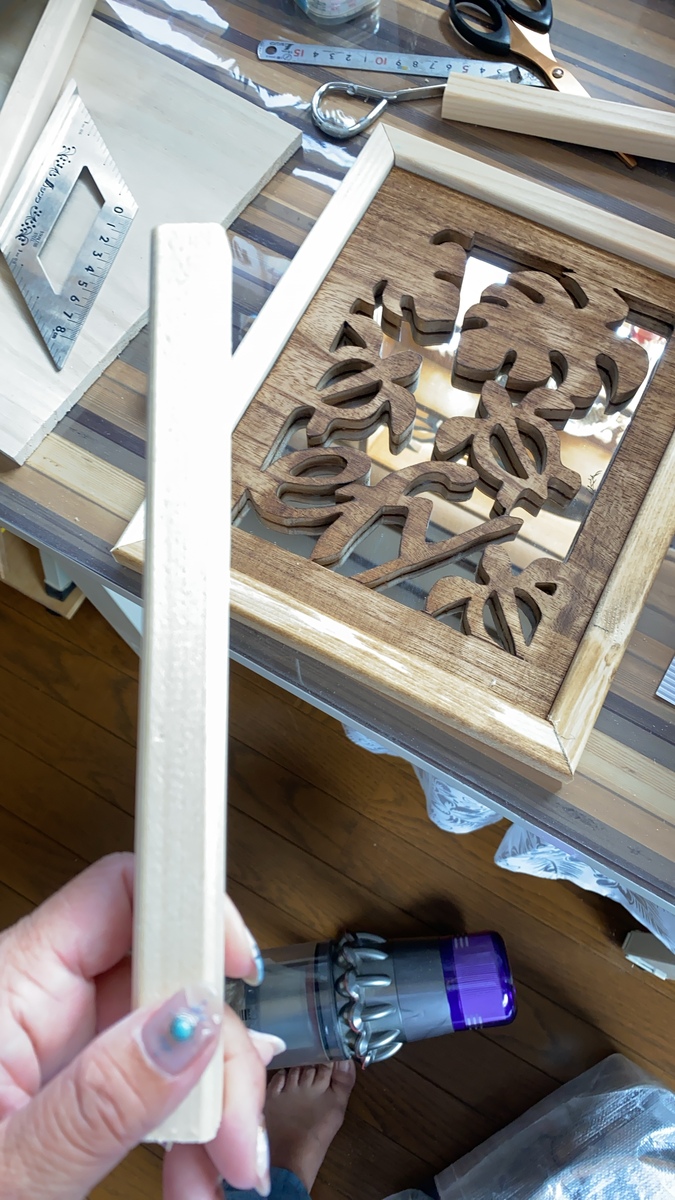 この鏡の大きさに木材をカット。