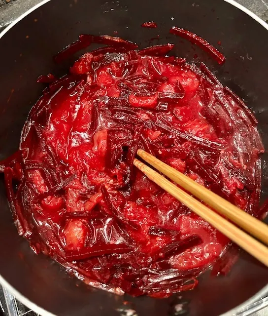 生のビーツは土臭いような香りがあるんだけど、④の蒸し煮をすることで軽減されます。