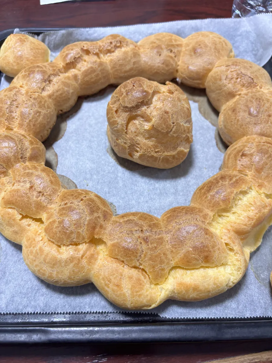 シュー生地をリースに型どるアイデアも素敵ですね✨