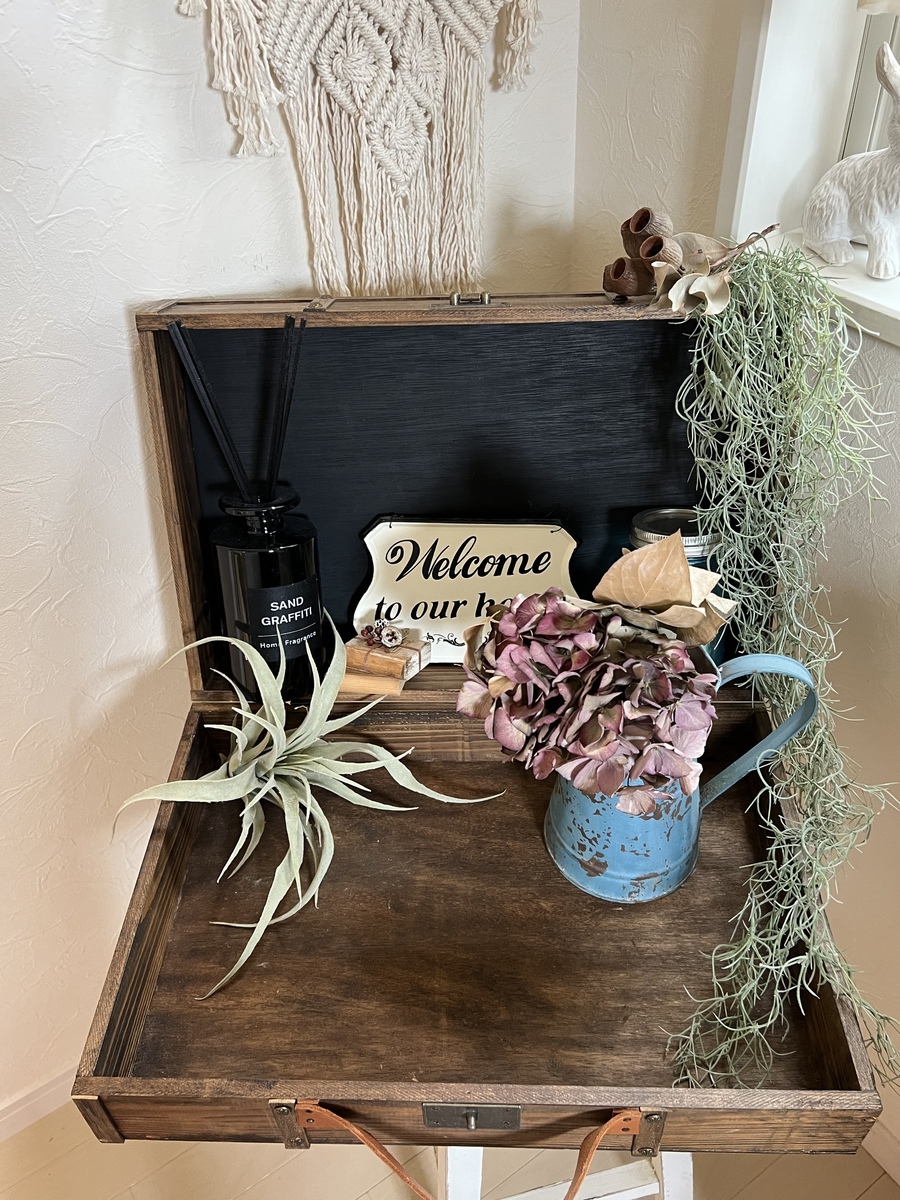 投稿を表示ウッドトランク、シックで素敵だけどどう使うのかしら?と思ったら…作品が映える撮影スポットになりそうですね💕