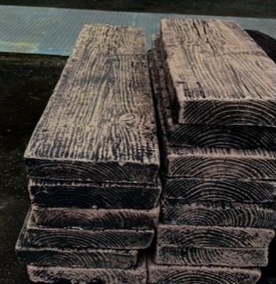 投稿を表示ログストーンなんてものがあるのですね。コンクリートなのに木目が施されてて、これ使えそう!🤔