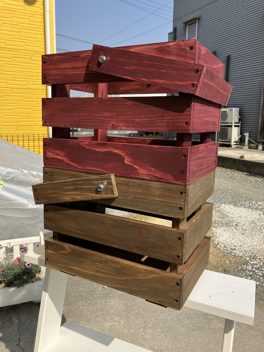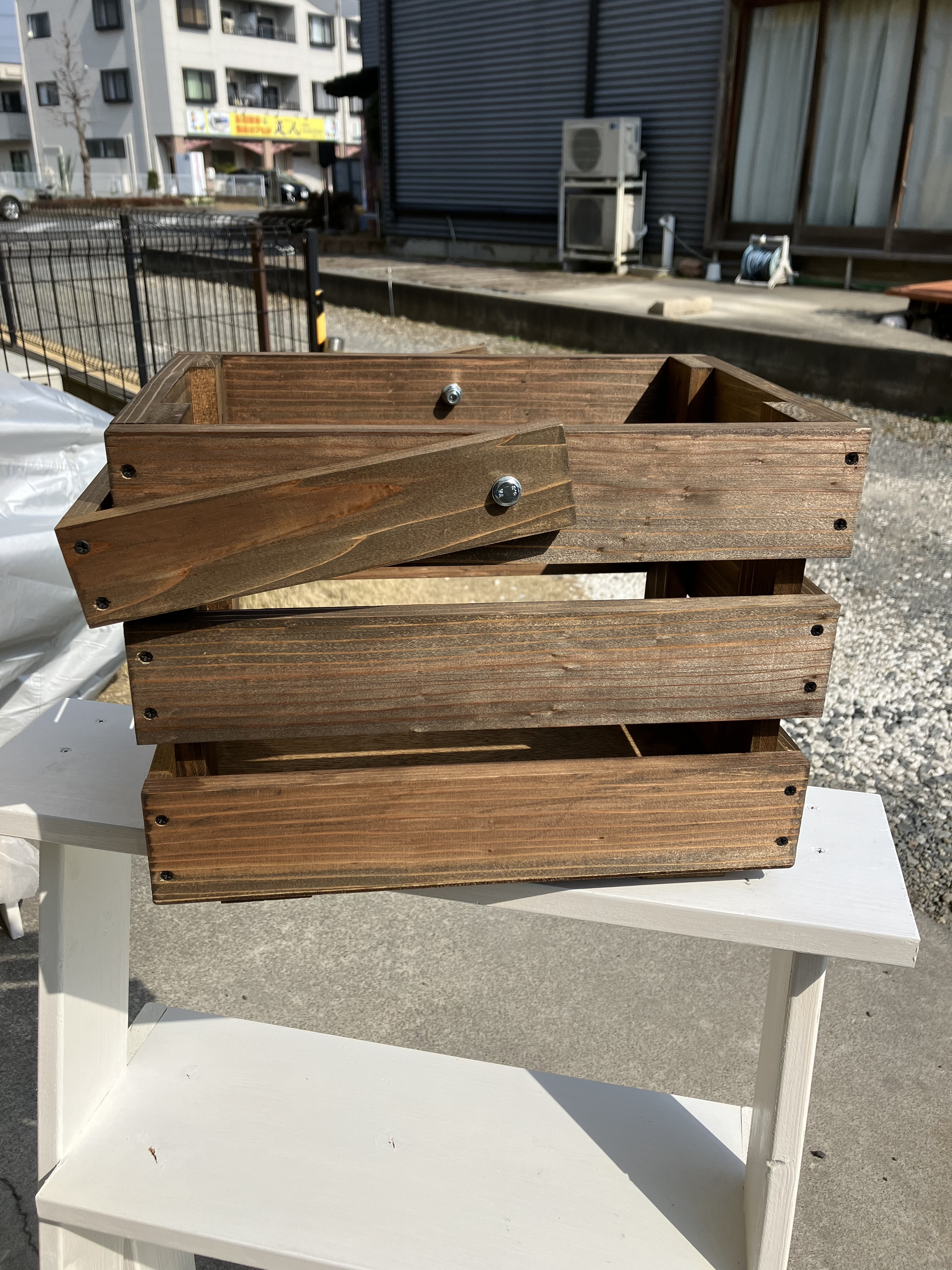 トップ > その他 > 今日(昨日)の作品【持ち運べる収納カゴ】 ゆうちゃん 2023/03/09 12:40 今日(昨日)の作品【持ち運べる収納カゴ】 午前の部午前の部は取手の所のボルトを緩めに留めてみました。 午後の部 午後の部の取手は少しボルトをきつめに締めて、取手が立てて止まるようにしました。 予約のページの写真だと分かりませんが、『スタッキング』が出来るようになっていました。 色について 茶系は工房にある【ウォルナット】 赤系は持込の 【ソリッドカラー バーガンディ】 いいね 共有する 共有する X LINE リンクをコピー コメントする 4 件の返信 (新着順) ミュートしたユーザーの投稿です。 投稿を表示 ちきりん 2023/03/09 18:22 私もこれを作りました。 重ねられるんですね。 知りませんでした。となると、もう一個欲しくなります♪ いいね 返信する ミュートしたユーザーの投稿です。 投稿を表示 ゆうちゃん 2023/03/09 20:44 WSが見つかりましたら、是非是非もうひとつ…。 いいね 返信する ミュートしたユーザーの投稿です。 投稿を表示 チコリ 2023/03/09 15:35 午前と午後のWS、お疲れ様でした🎶 素敵な作品ができましたねー😊 スタッキングできると使い勝手向上しそう❣️ いいね 返信する ミュートしたユーザーの投稿です。 投稿を表示 ゆうちゃん 2023/03/09 15:39 労いの言葉をありがとうございます😊 スタッキングできるとは、本当に使い勝手良いですよ😁 いいね 返信する ミュートしたユーザーの投稿です。 投稿を表示 べるん 2023/03/09 13:26 色違いでのスタッキングが可愛らしくて、絵になりますね🥰 私もバーガンディ 好きです☺️ いいね 返信する ミュートしたユーザーの投稿です。 投稿を表示 ゆうちゃん 2023/03/09 13:35 コメントありがとうございます😊 キツいあかではないので、この色使い勝手いいような気がします🤗 いいね 返信する ミュートしたユーザーの投稿です。 投稿を表示 はるかのん 2023/03/09 12:49 スタッキング出来るのは 便利ですよね❣️ ソリッドカラーのバーガンディ 赤過ぎす 綺麗な色合いですね✌️ いいね 返信する ミュートしたユーザーの投稿です。 投稿を表示 ゆうちゃん 2023/03/09 12:58 お褒めのコメントありがとうございます😊 リゾットカラーは、ウェットティッシュでも塗れる塗料なので、色の濃さが変えられると思います。ので使ってみては如何ですか? いいね 返信する ミュートしたユーザーの投稿です。 投稿を表示 はるかのん 2023/03/09 13:12 ソリッドカラー まだ使った事無いんです 使ってみたいですね😉 いいね 返信する