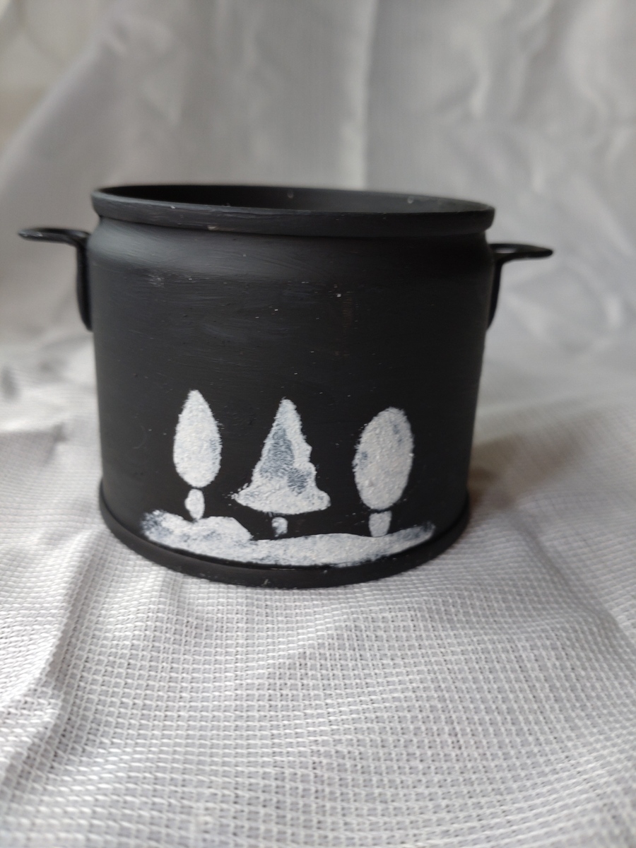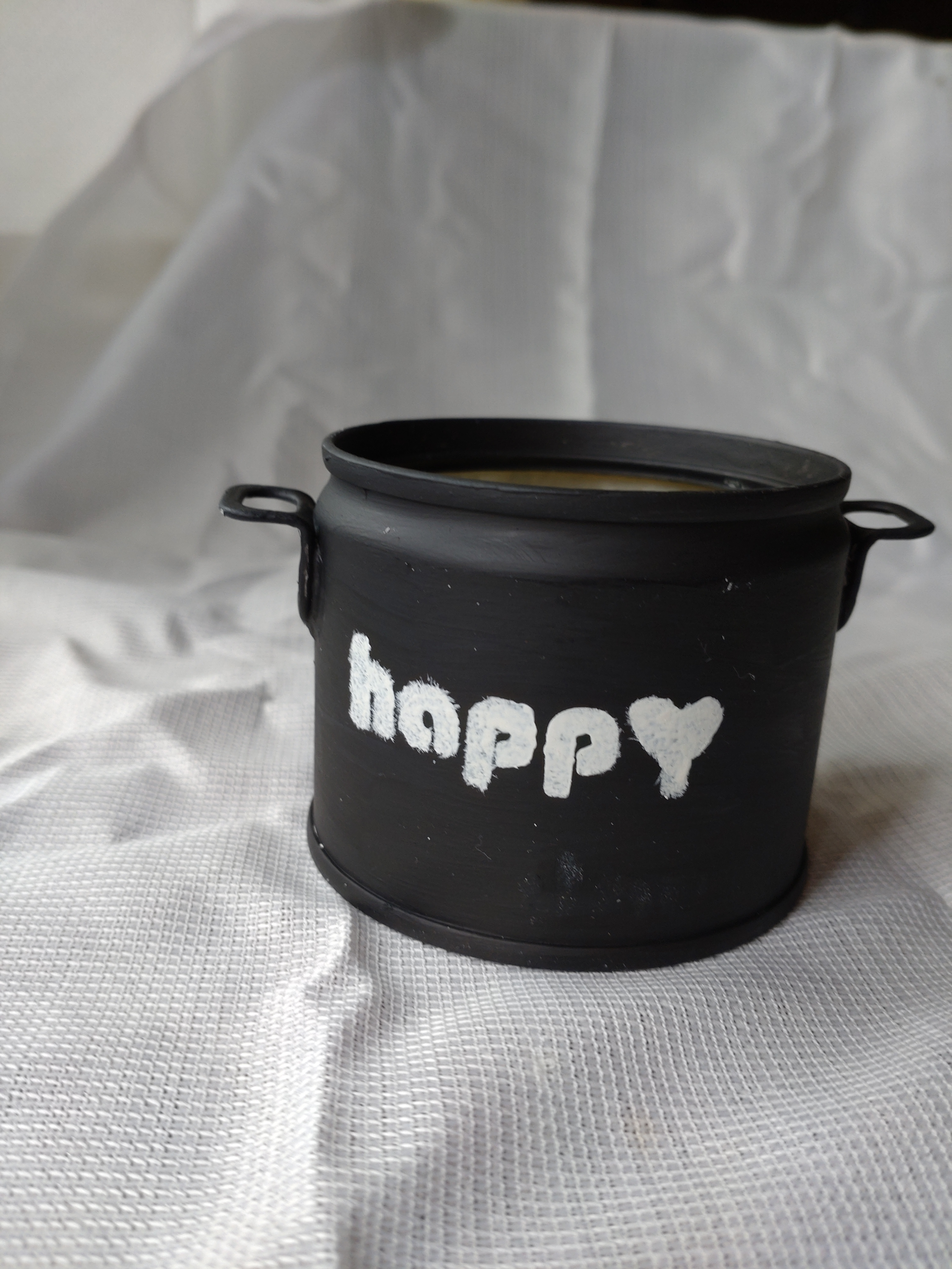 缶の形も可愛いし、ステンシルのかすれ具合も味があって素敵✨