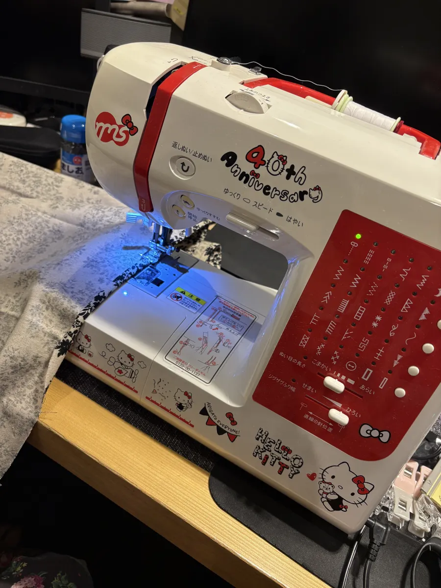 キティちゃんミシンに癒されながら縫い物が出来て、楽しいですね❣️