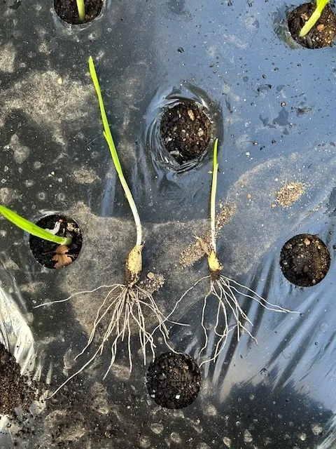 で、間違ってひとつの穴に2個植えてたのがあったので、今ならまだ大丈夫だろうと11日に掘り返したんですよ。