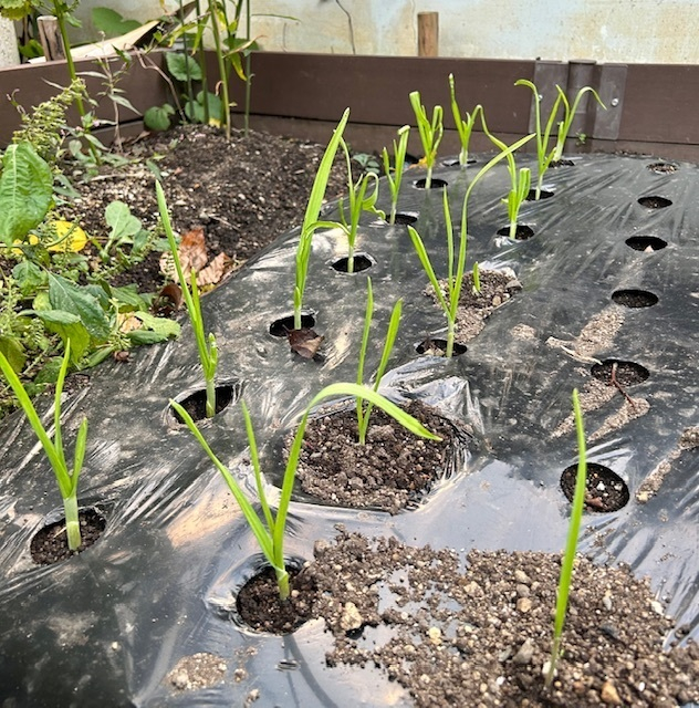 浅植えしてしまったせい(?)で植え付けから4日で芽が出たニンニク。