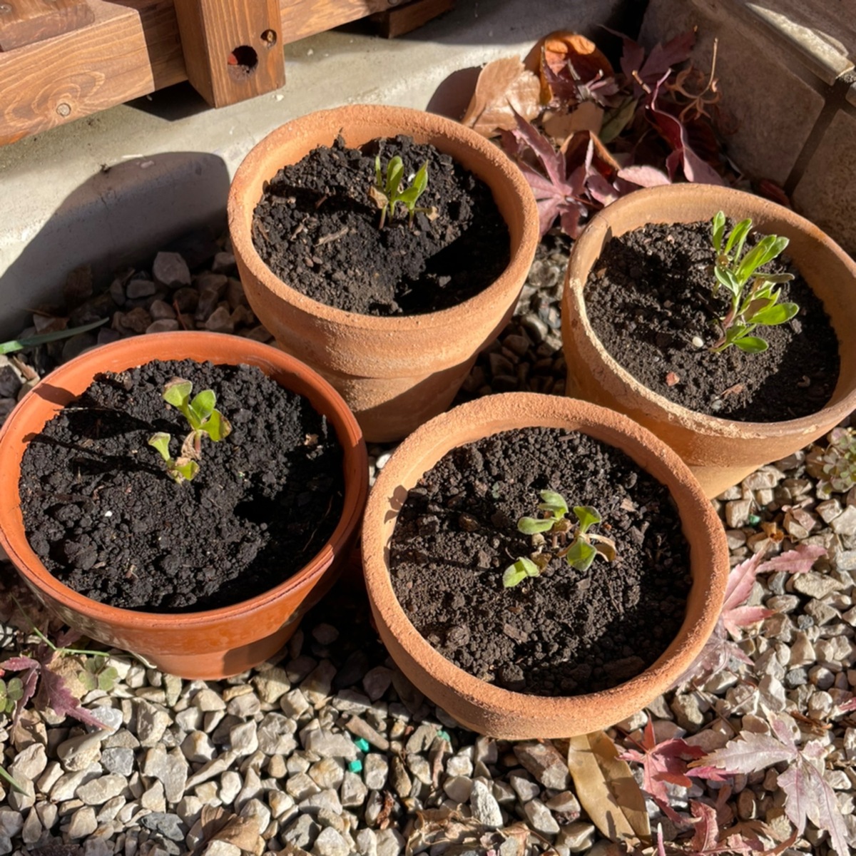 10月20日投稿(リンク→ https://diy-square.cainz.com/announcements/fvtfmrheqbnmibpq )で黒土のみの小鉢でも発芽することが分かったんですが、その後の葉っぱの成長が良くないので、ここは諦めて地植えして成長するか?に切り替えました。