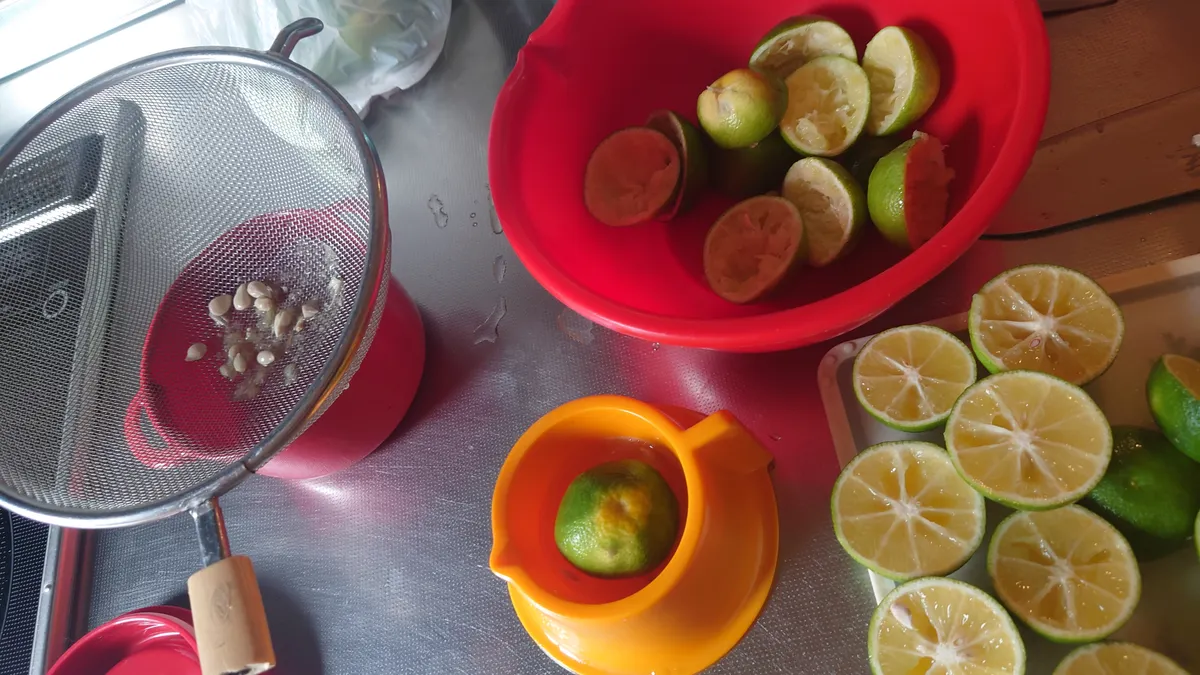 すだちを半分に切ってレモン絞り器で果汁を絞りました。