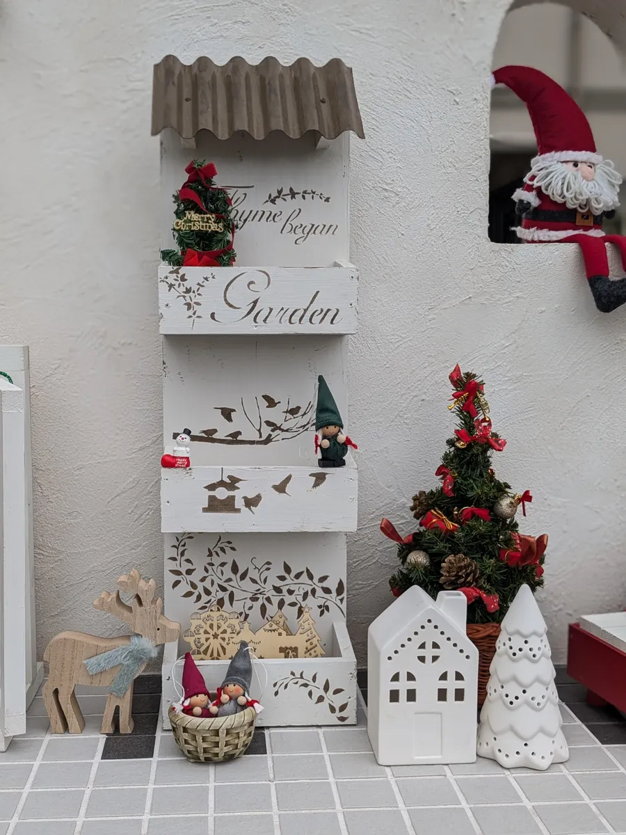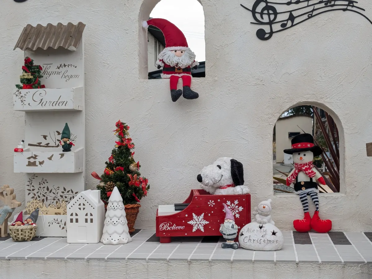 投稿を表示白いモルタル小屋にクリスマスカラーの様々な作品が並べられていてとっても素敵。これだけ広い場所があれば、沢山飾れていいですね。まだまだ作品が飾れそう🤗見ているだけでワクワクします。