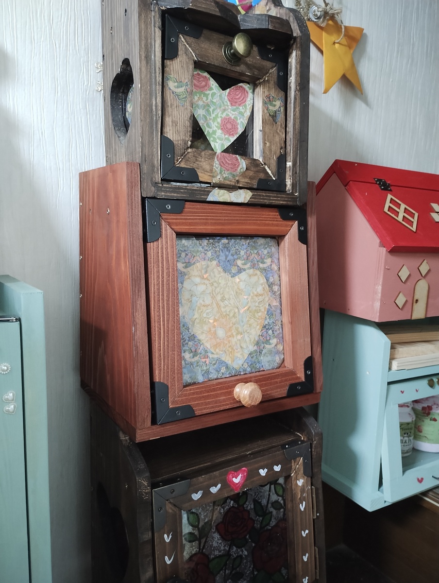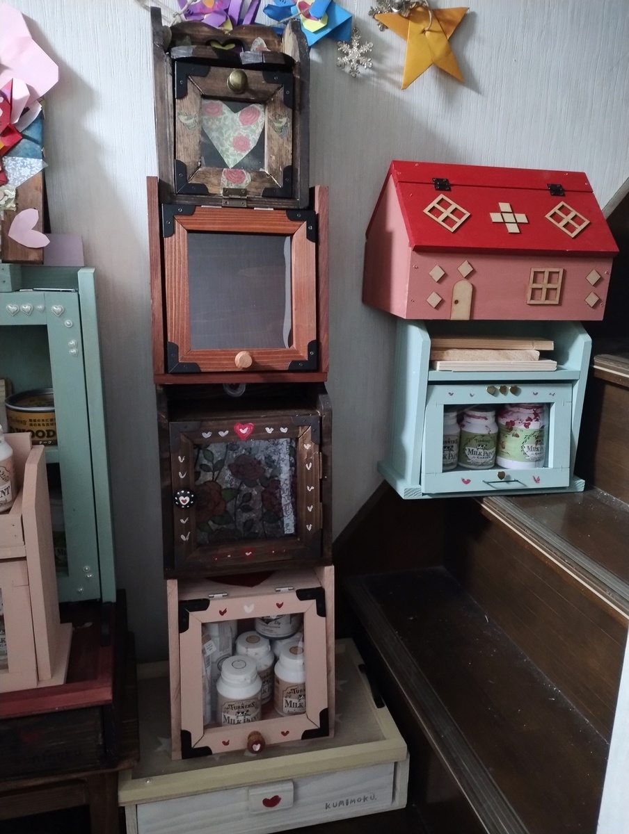 トップ > DIY > インテリア > のこぎりでキャビネット きゃな 2024/01/25 13:26 のこぎりでキャビネット 2段目と4段目はアレンジ作品です✨テッシュボックス入れにアレンジしました✨3作目の作品です✨ kumimokukuのステインカラーのマホガニーにしました✨ひさびさのマホガニーがどうかな~と思いましたが木目出て金具と取っ手もなじんでくれました😊 丁番付に時間かかりましたが満足感です☺ 大利根店にてスタッフさんと楽しい時間 ありがとうございました🙇 いいね 共有する 共有する X LINE リンクをコピー コメントする 3 件の返信 (新着順) ミュートしたユーザーの投稿です。 投稿を表示 みー 2024/01/25 22:47 どの色もいいですねぇ🥰この作品はどこに置いても使い勝手が良さそう☺️ いいね 返信する ミュートしたユーザーの投稿です。 投稿を表示 きゃな 2024/01/25 23:40 みー ありがとうございます😊 シンプルの中にいろいろ作業があっていいです✨ 使い方もいろいろ楽しい作品です✨ いいね 返信する ミュートしたユーザーの投稿です。 投稿を表示 モカ 2024/01/25 19:46 きゃなさんの、作品の数々🥰色見本のように、沢山あって凄いですね😊 どれも素敵な作品💓 これを見る👀と欲しくなってきます😆 でも丁番付けが、待ってるのかぁ💦 いいね 返信する ミュートしたユーザーの投稿です。 投稿を表示 きゃな 2024/01/25 19:50 モカ ありがとうございます✨ 丁番の位置決めがフタが閉まるかです☺ それさえクリアしたら完成です☺ いいね 返信する ミュートしたユーザーの投稿です。 投稿を表示 ひまわり 2024/01/25 15:53 マホガニーって、とっても素敵な色ですね🩷。見本を見てやめとこぅって思っていましたが、キャナさんの作品を拝見して、作ってみようかなぁ~と思案中です😍。 いいね 返信する ミュートしたユーザーの投稿です。 投稿を表示 きゃな 2024/01/25 17:52 ひまわり ありがとうございます😊 意外と木目に染み込んでくれて 金具と取っ手になじんでくれました😊 おすすめです☺♥ いいね 返信する