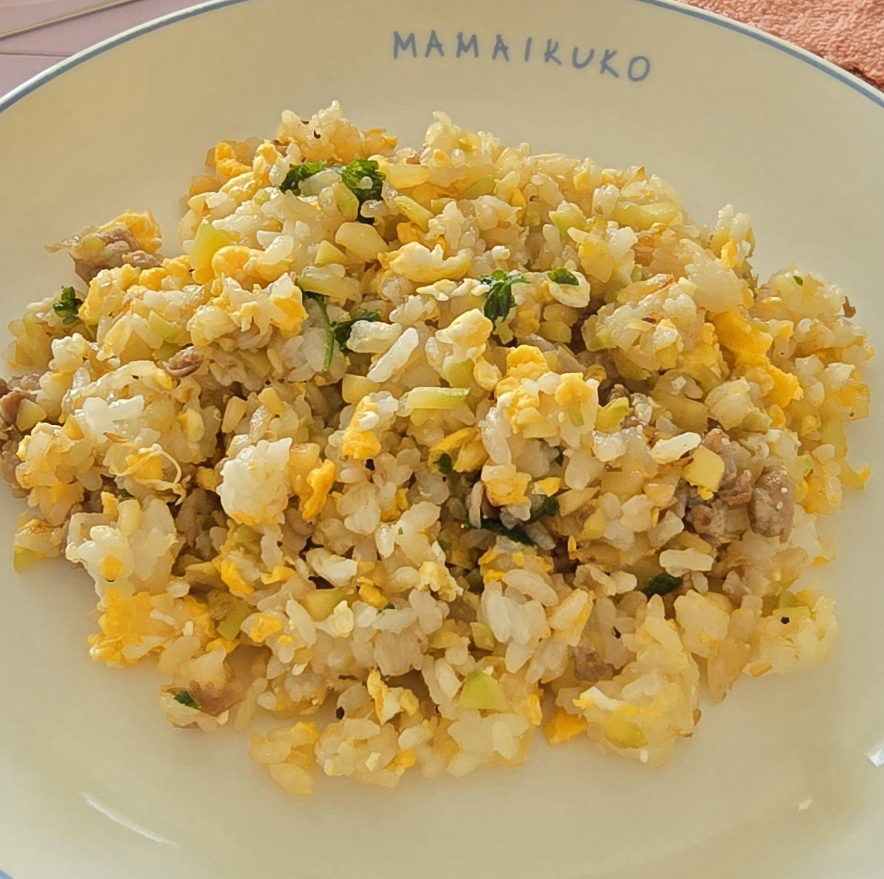 昼ごはん(ブロッコリーの茎入り焼き飯♪)