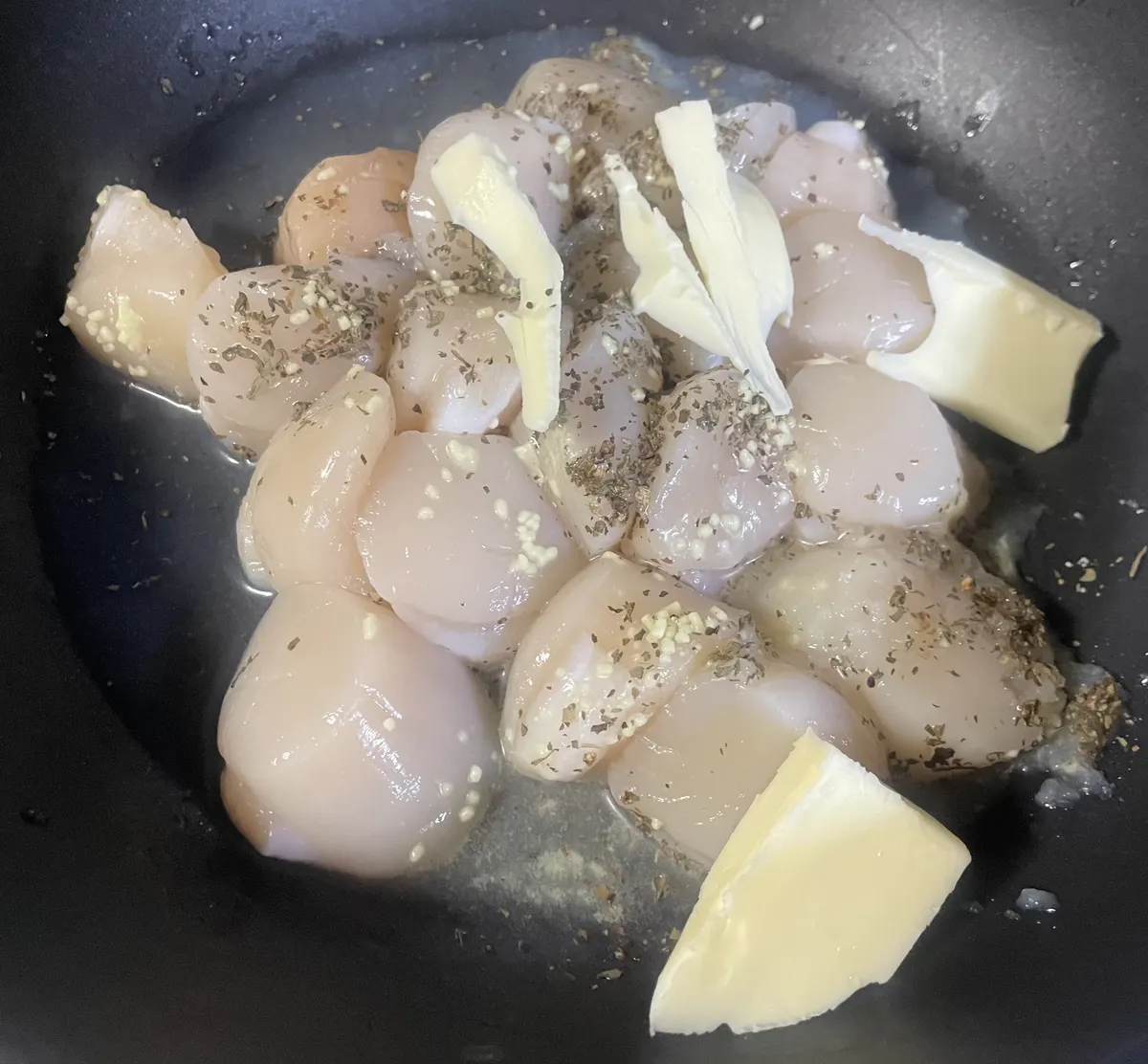 【ふるさと納税GETの訳あり帆立で「ガーリックハーブバターのソテー」😋⚪️🧄🧈🌿✨】