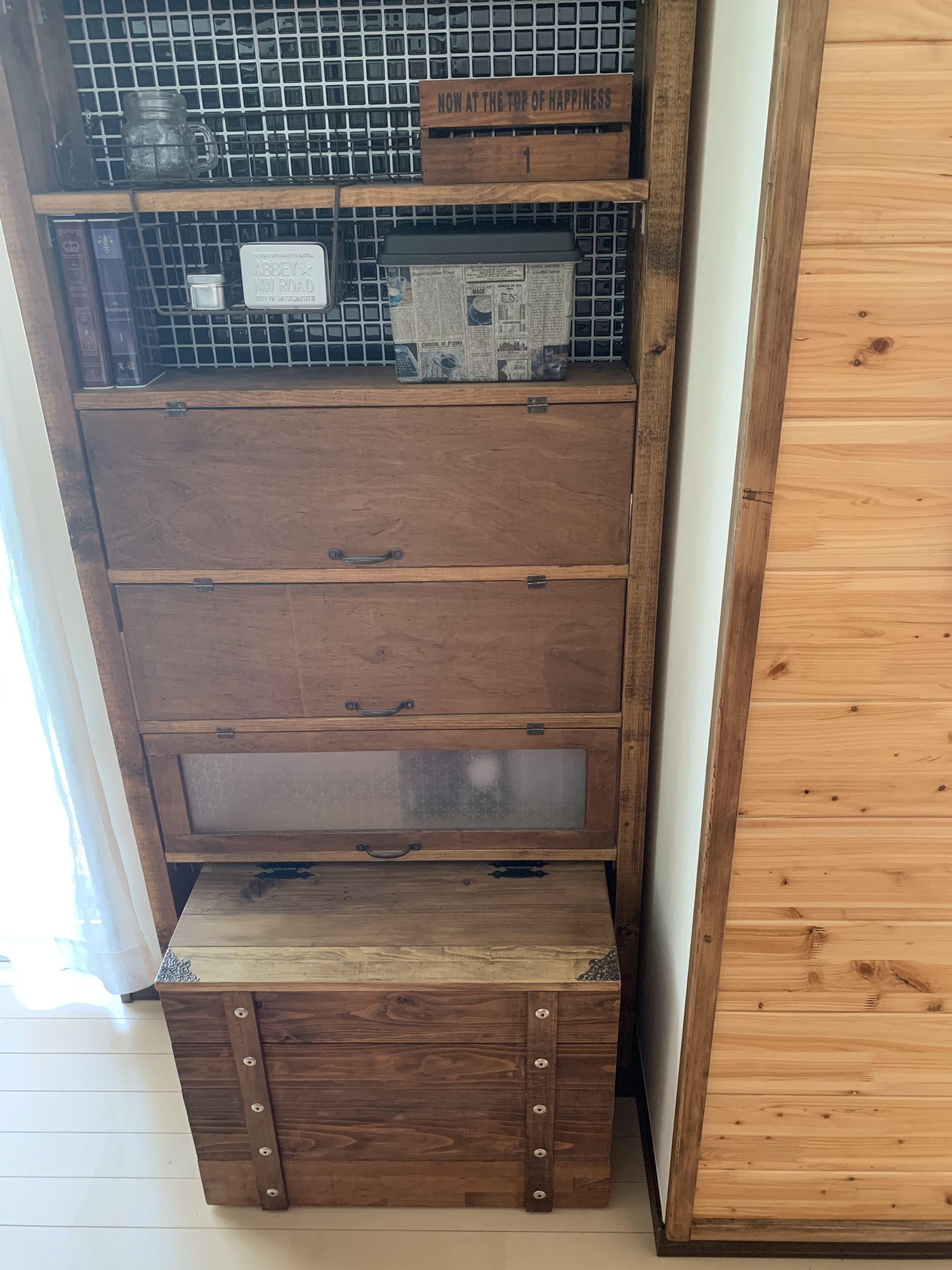 トップ > その他 > キャスター付きBOX CHIE☆ 2022/07/02 14:20 キャスター付きBOX 1号BOXはスノコで作っていて、蓋もなくホコリが入り放題だったので壁面収納の下のBOXを作り替えました深さがあるので2段収納BOXを取り出しやすいようにホールソーで穴をあけましたBOXを引き出さなくても蓋が開くように蝶番を真ん中にも取り付けました👍✨左側には古新聞をいれます波板をとめる金具を使ってみたよ いいね 共有する 共有する X LINE リンクをコピー コメントする 2 件の返信 (新着順) ミュートしたユーザーの投稿です。 投稿を表示 おださん 2022/07/06 18:56 フェッフェッフぇーぃ!(゚∀゚) こりゃまカッコいいし オシャレですわー!(゚∀゚)✨ そして機能性もばつぐん さすがはCHIE先生(゚∀゚) いいね 返信する ミュートしたユーザーの投稿です。 投稿を表示 CHIE☆ 2022/07/07 12:55 おださん フェッフェッフぇーぃ!って😂 スノコBOXは掃除が大変で💦これ最高だよ✨使いやすさも抜群💪 いいね 返信する ミュートしたユーザーの投稿です。 投稿を表示 Grass艹crown 2022/07/03 03:11 「波板をとめる金具を使ってみたよ」 じゃないっスよぉう😵‼️💦 もぉう何でこの猛暑の中で、サラりとミント効かせた発言しちゃってんのさぁ〜⁉️✨ ナニナニどゆこと😳⁉️ またもや私の考察が外れる流れっ🤣⁉️👍✨ あ、はい😶 もう間違う予感しか無いので、教えてCHIE☆センセーーーっ🤩🎓‼️✨ いいね 返信する ミュートしたユーザーの投稿です。 投稿を表示 CHIE☆ 2022/07/03 17:06 Grass 艹 crown さん フェッフェッフェ〜😁 これ使ってみたよ↓ 釘の代わりに造作用ビスにしたの👍 いいね 返信する ミュートしたユーザーの投稿です。 投稿を表示 Grass艹crown 2022/07/03 17:18 「フェッフェッフェ〜😁」 とか、笑い方可愛いなオイっ😍❤️ 傘釘って初めて出会うお方だよっ☂️🔩‼️✨ 金具好き倶楽部はやはり奥が深いわぁ〜😮💨❤️✨ こんな素敵なフォルムの方が世の中にはいらっしゃったのだね🤩✨ ひゃあ〜🙌✨ 何と言う素晴らしき共有🤝✨ でんぐり返し3回キメてかーらーのー、土下座待ったナシっ🙇♀️‼️✨ 有難うだよぉう🙌✨ いいね 返信する ミュートしたユーザーの投稿です。 投稿を表示 CHIE☆ 2022/07/03 18:09 あれ🤔 トタン波板にとめてるやつ見たことない❓ これ実家の洗濯物干し場に波板で屋根作った時のあまり🤗捨てずにとっておいて大正解👍 フォルム最高😍 いいね 返信する