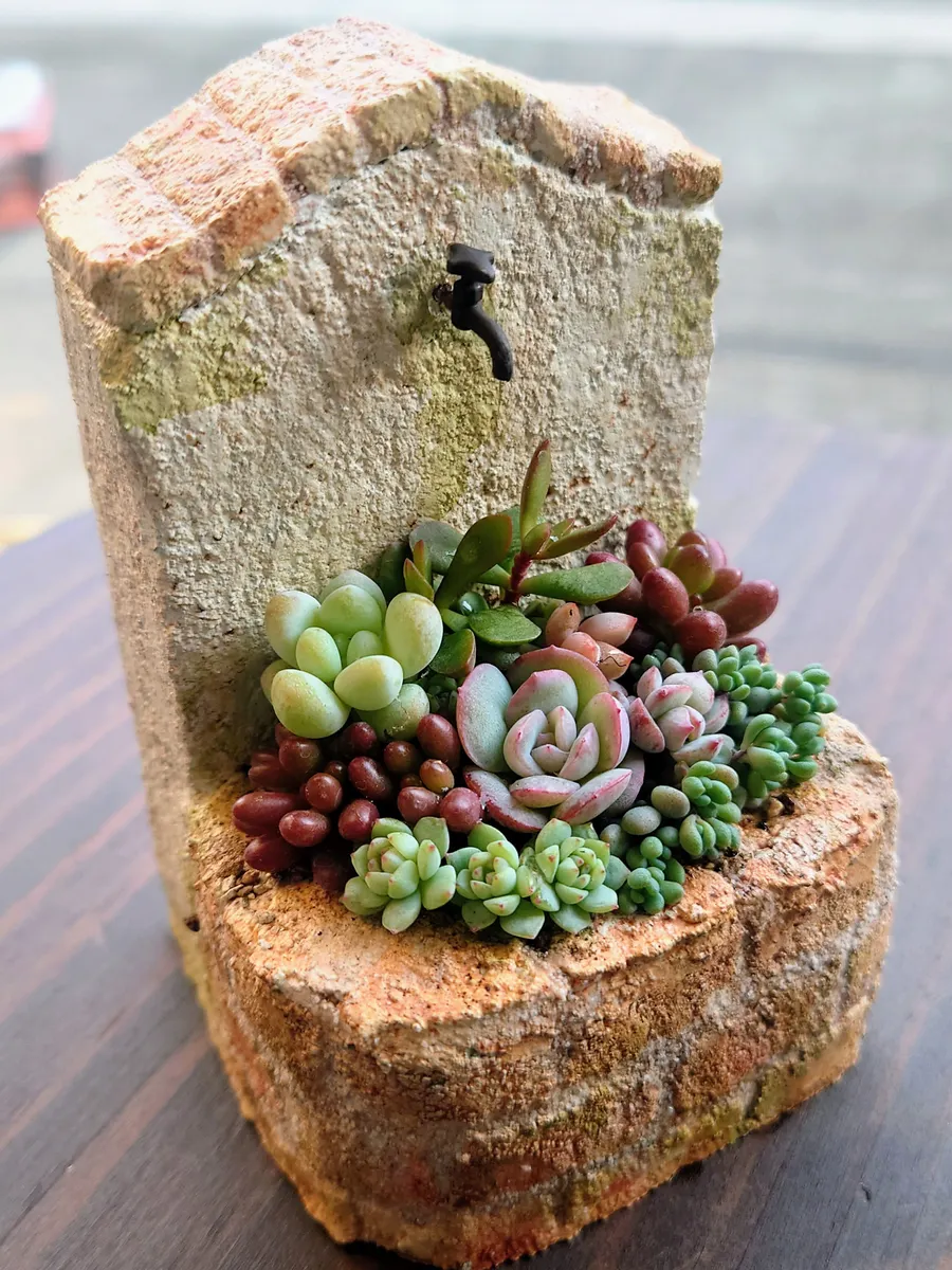 投稿を表示蛇口もついていてかわいいモルタル鉢ですね