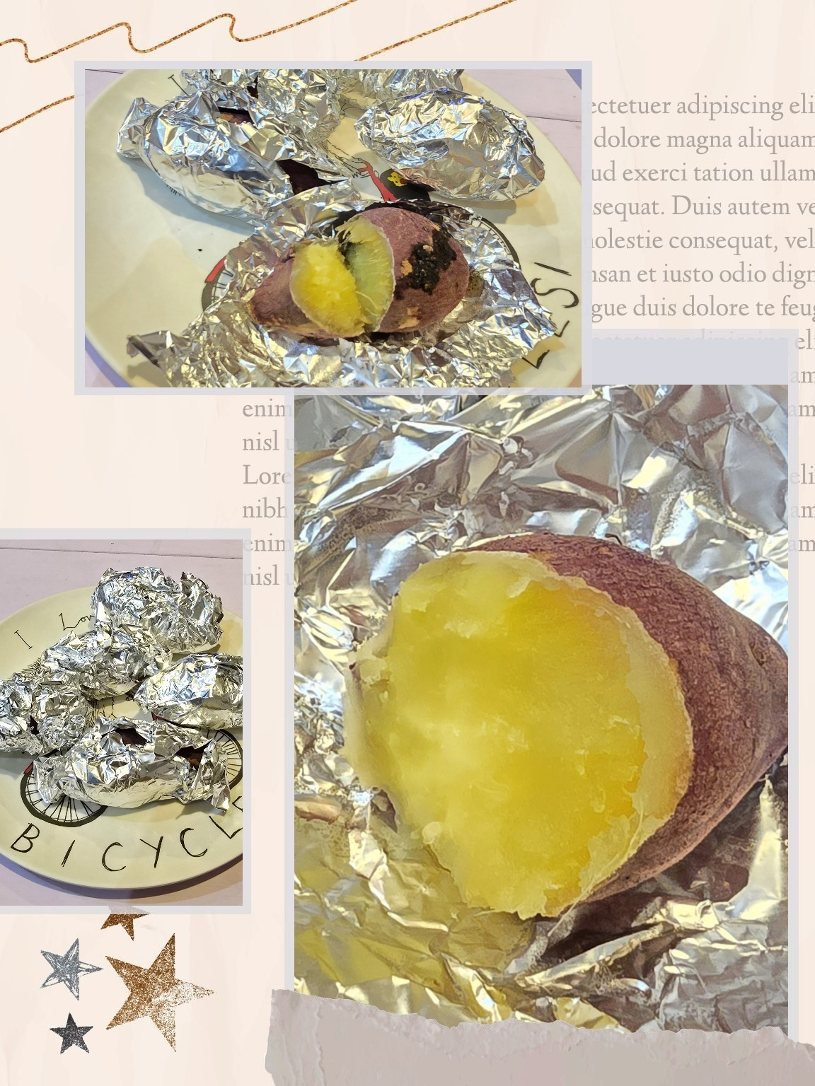 ガスコンロのグリルで焼くのにちょうどいいサイズのシルクスイートを八百屋さんで購入したので、さっそく焼きました〜♪ ちっちゃいけど、めちゃウマ😋💕