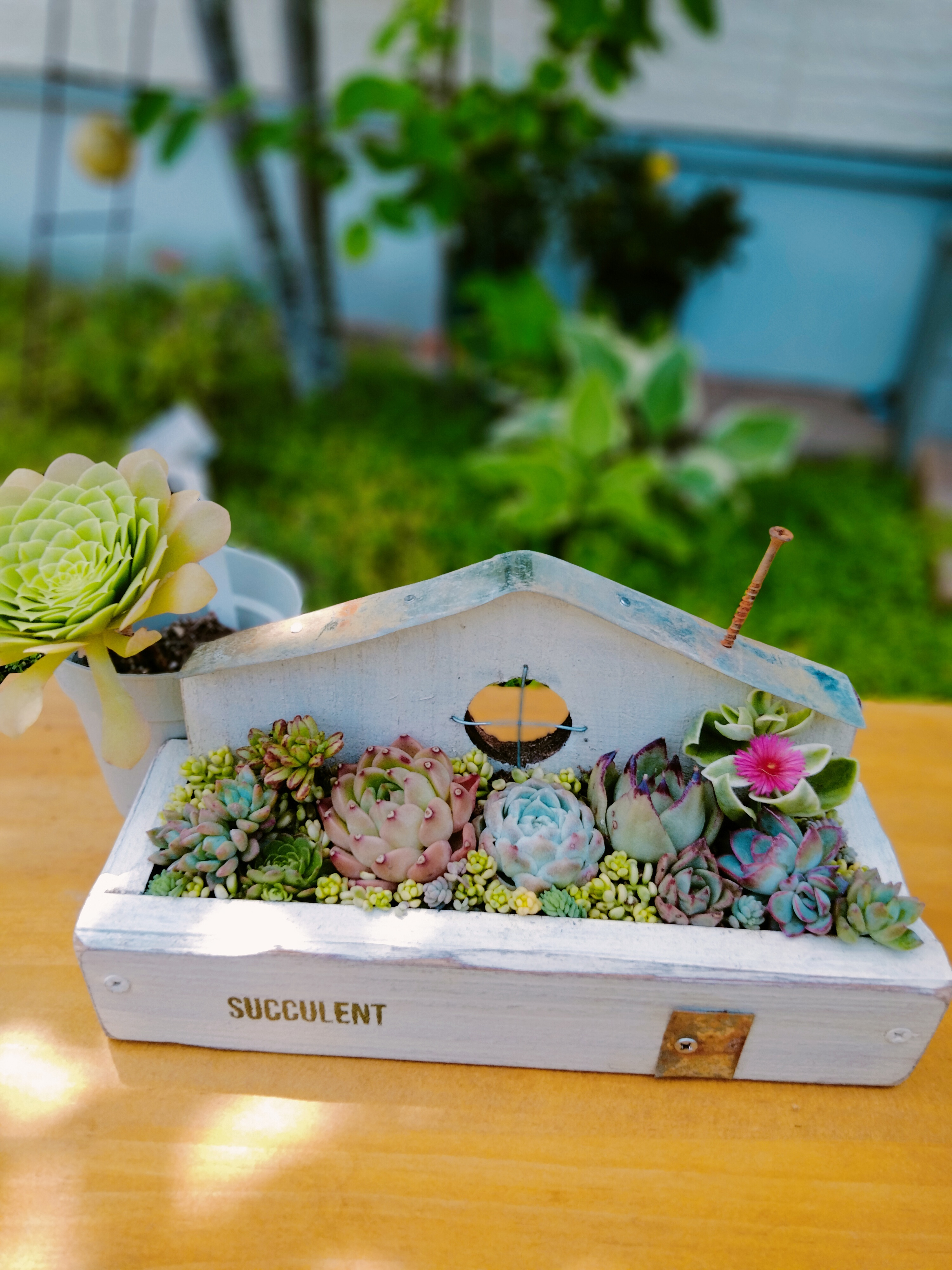 投稿を表示可愛いお家型のプランターに、見事な多肉さんが寄せ植えされて、とてもお洒落ですね✨