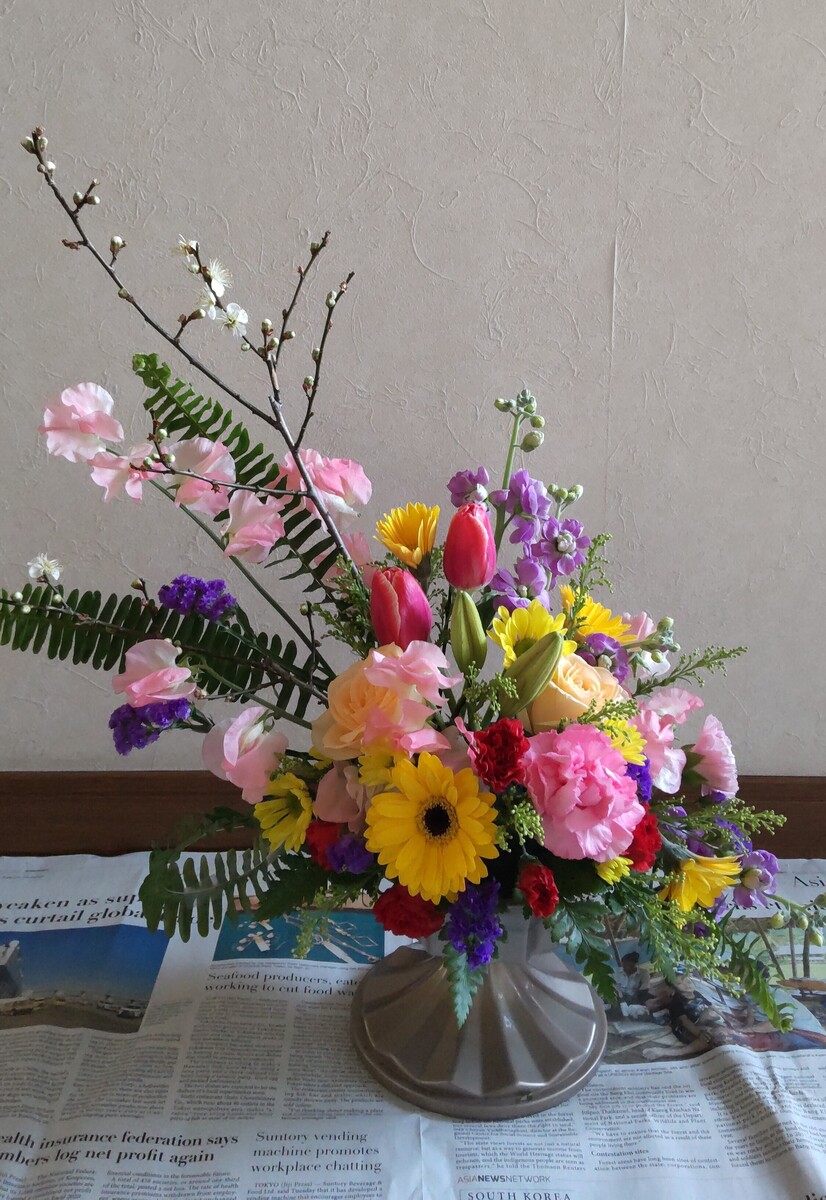 投稿を表示梅にスイートピーが、添えてあり、たくさんの花🌸や色が使ってあるのに、まとまりがあって華やかで素敵です😍💓💓