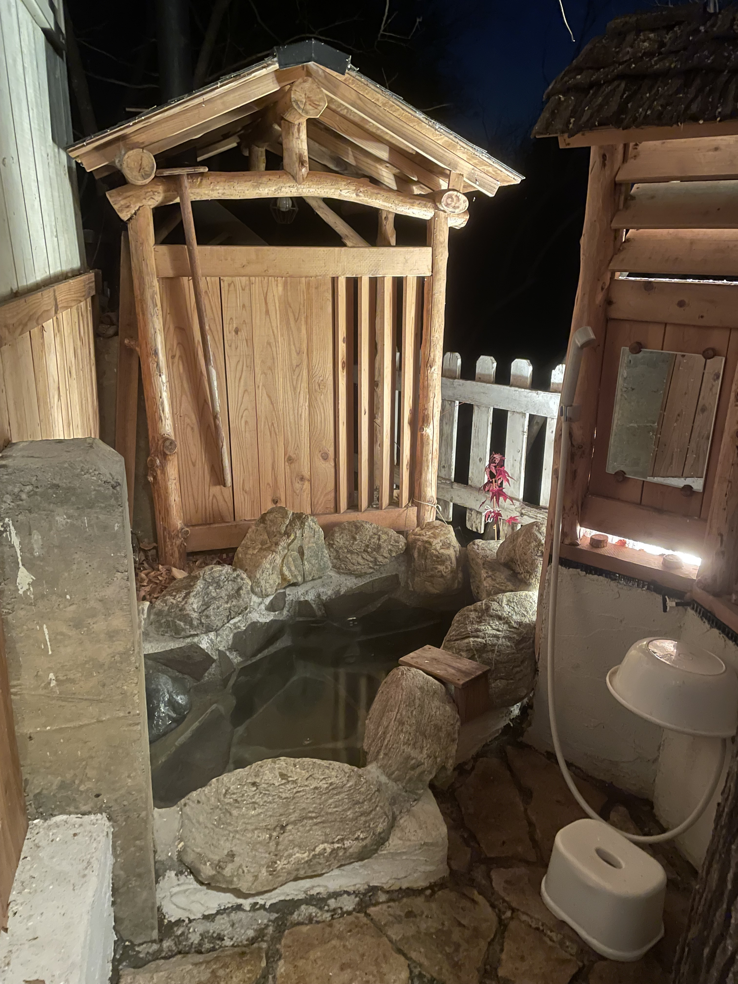 ■旅行先で色々な露天風呂♨️を見て、コンパクトながらそれっぽく、そして入浴中の視界を妨げず、そして外部から見えにくい工夫は、こだわりました☝️
