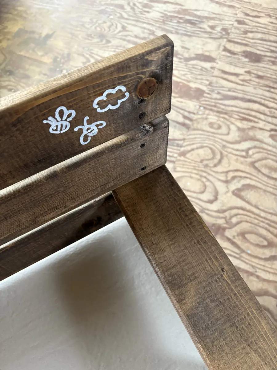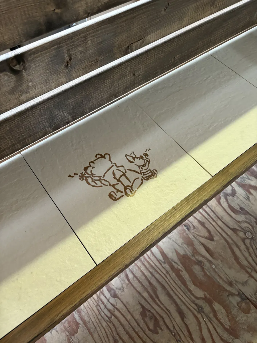 プーさんのステンシル付けちゃって、ますます小学生のためのベンチですね🧸