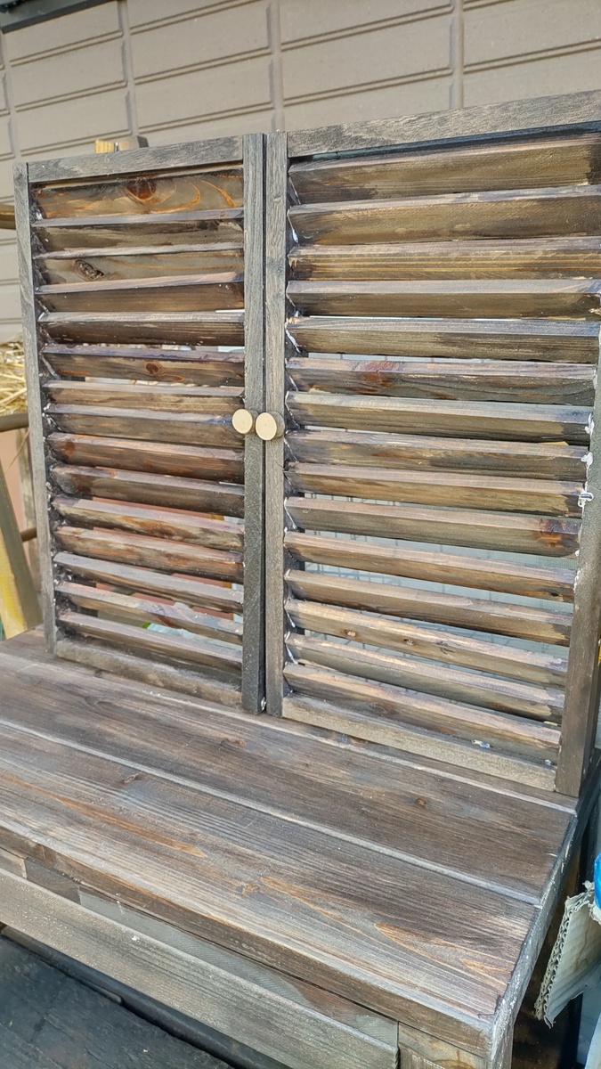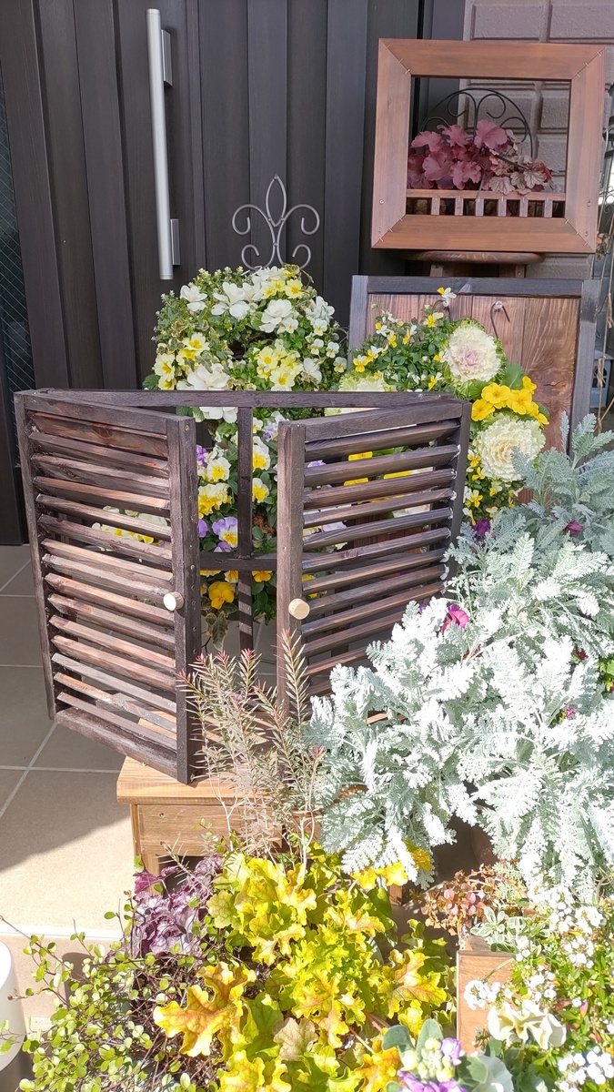 庭で使うと雰囲気が出て、グリーンと窓枠扉がお互いに引き立てあっているなぁと感じますね☺️