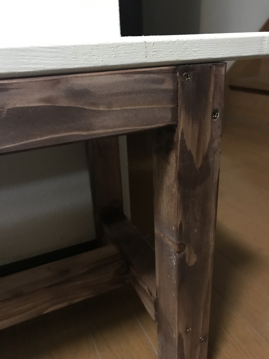 投稿を表示イイですねー、ロングベンチ私も作りたい作品の一つです。脚は何色にしたんですか?