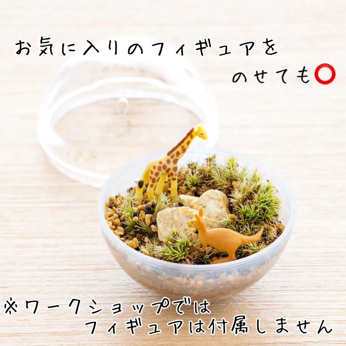 動物やキャラクターのフィギュアを置いてアレンジするのもおススメです🦒