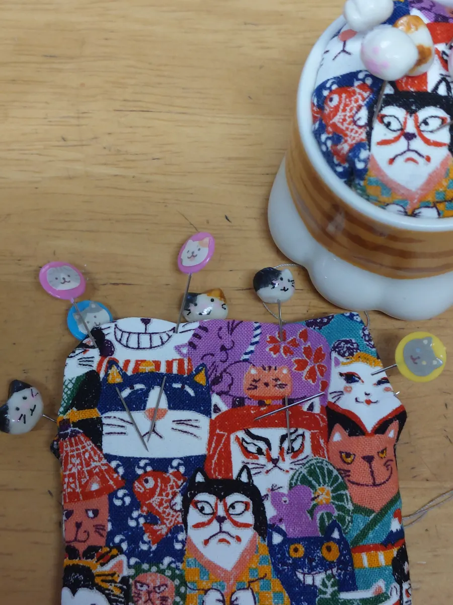 ピンクッションとまち針をニャンコ尽くしにしてみました