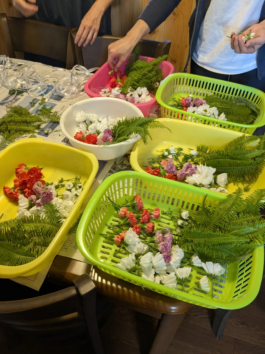 まずお花を短く切って庭のリーフを分けます🌿