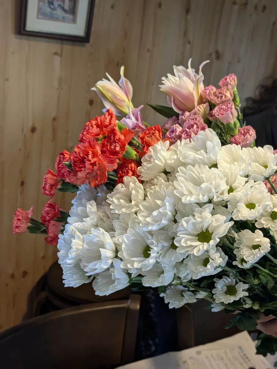 カーネーション🩷🧡と白い菊🤍