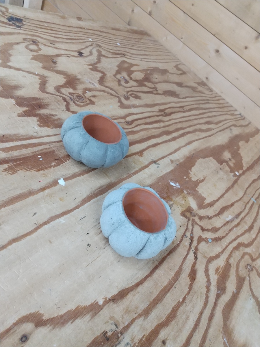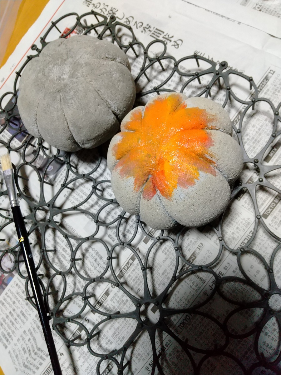 セメントで作るかぼちゃ型ミニ鉢【時間との戦い】