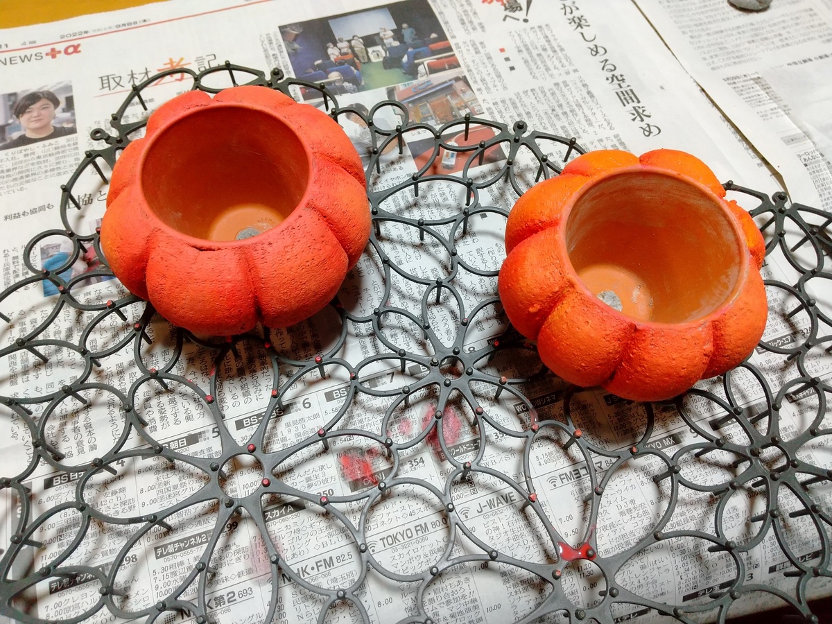 数日前に作ったかぼちゃ🎃のミニ鉢、色を塗ったのでやっとご紹介です。