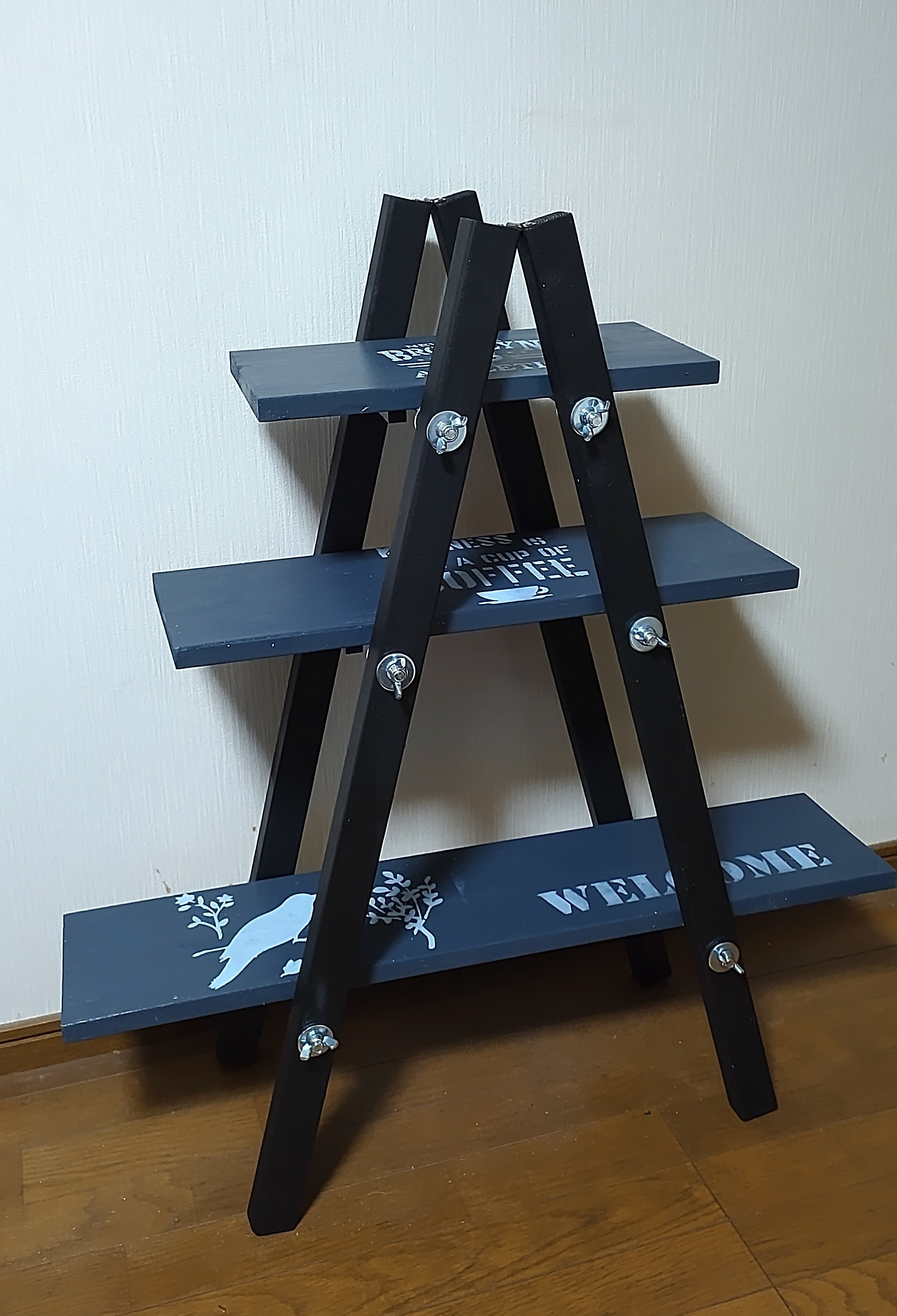 投稿を表示ステップラダーとっても素敵ですね❣️全体の色もいいし、ステンシルも最高です。私も作りたくなりました❢マイストアーではまだ開催されていないのでざんねんで〜す。…