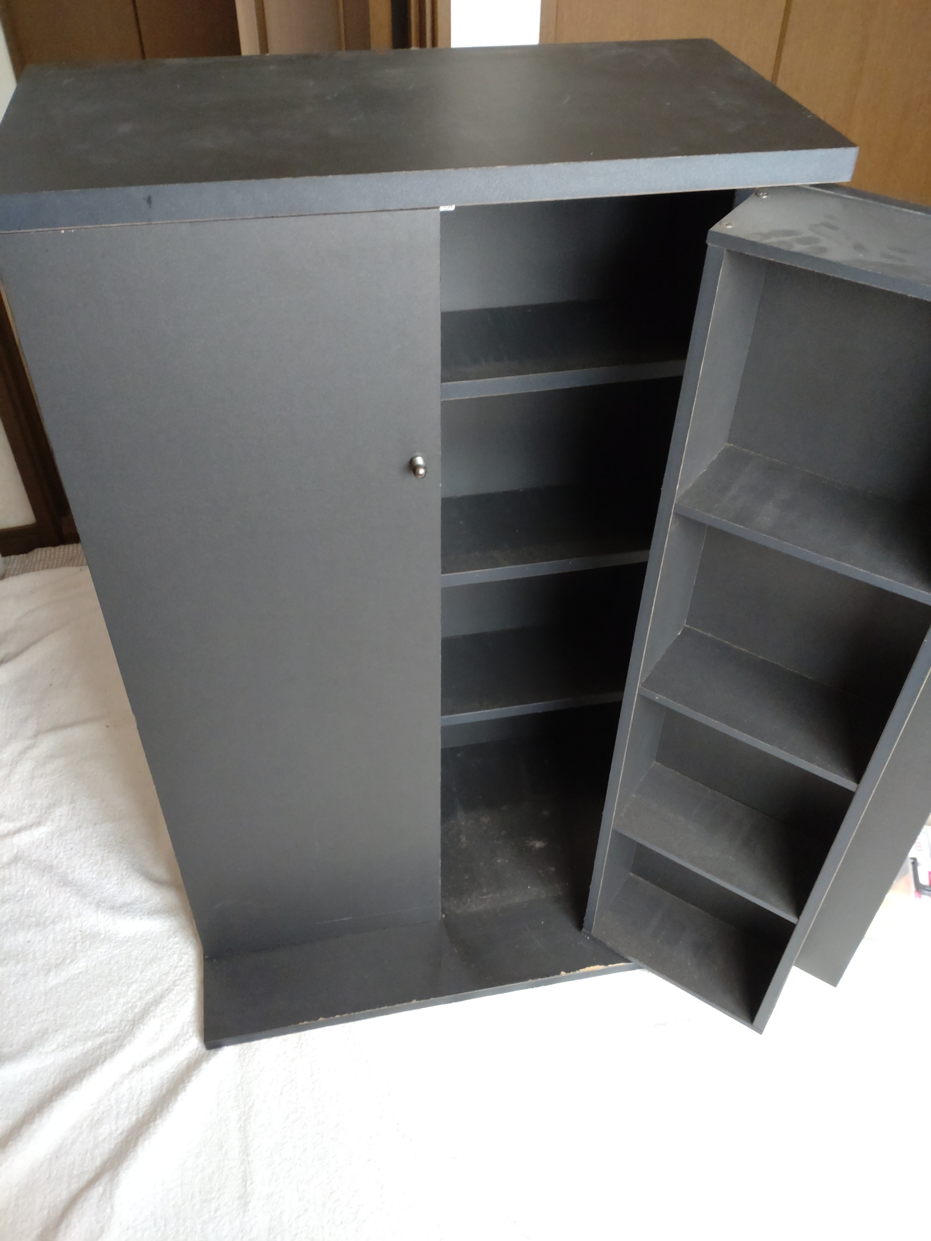 ビデオテープは燃えるゴミだそうで数回に分けてなんとか処分したのですが、棚は汚れてるものの捨てるにはちょっと、かと言って黒すぎて今の部屋にはちょっと、、🤔