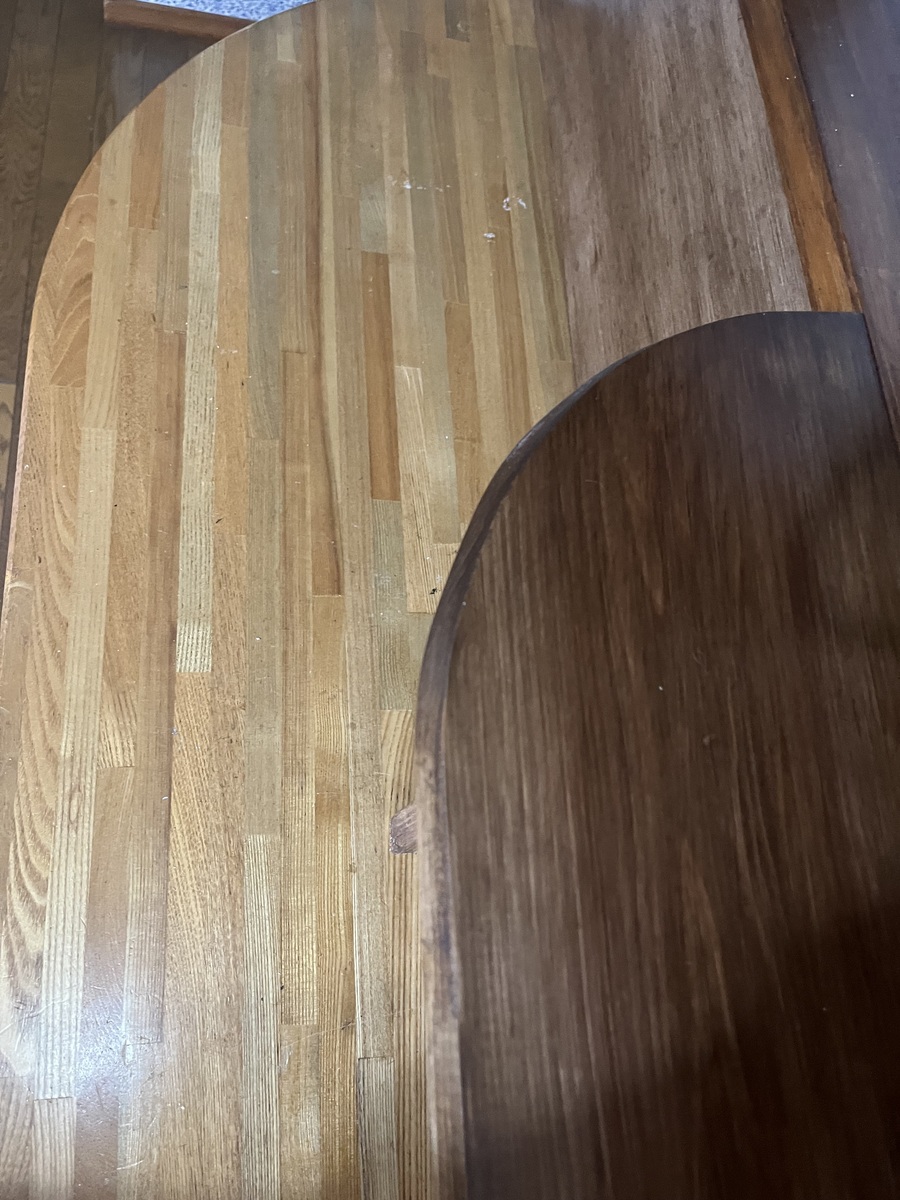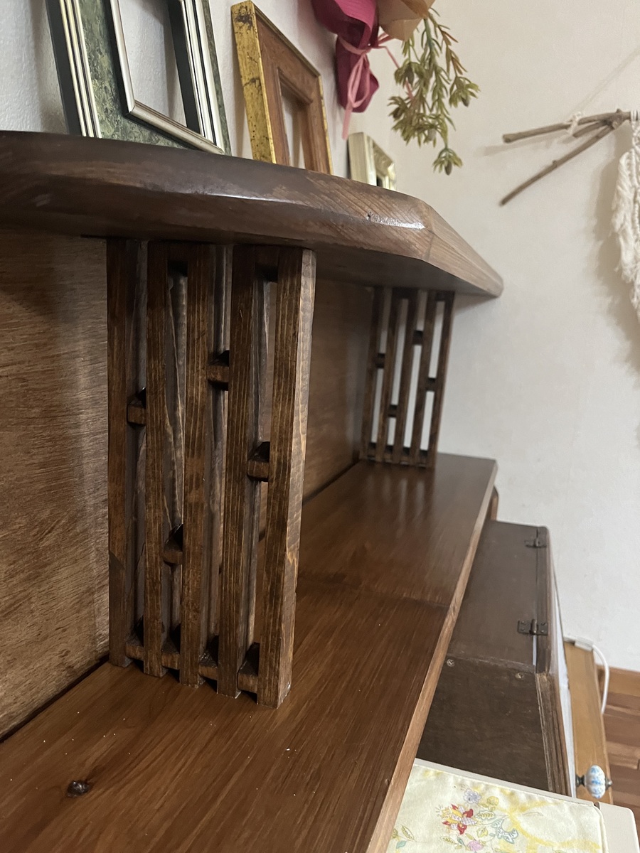 棚の足を付けないで欲しいと言ったのですが強度を重視と言うことで、凝ったおしゃれデザインのあしを作ってくれました。元のカウンターと揃いの丸みをもたせたカウンター!