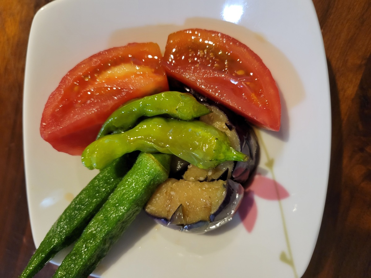 お野菜の煮浸しも一緒に彩り美しい食卓だなぁ〜😆👍🎨✨