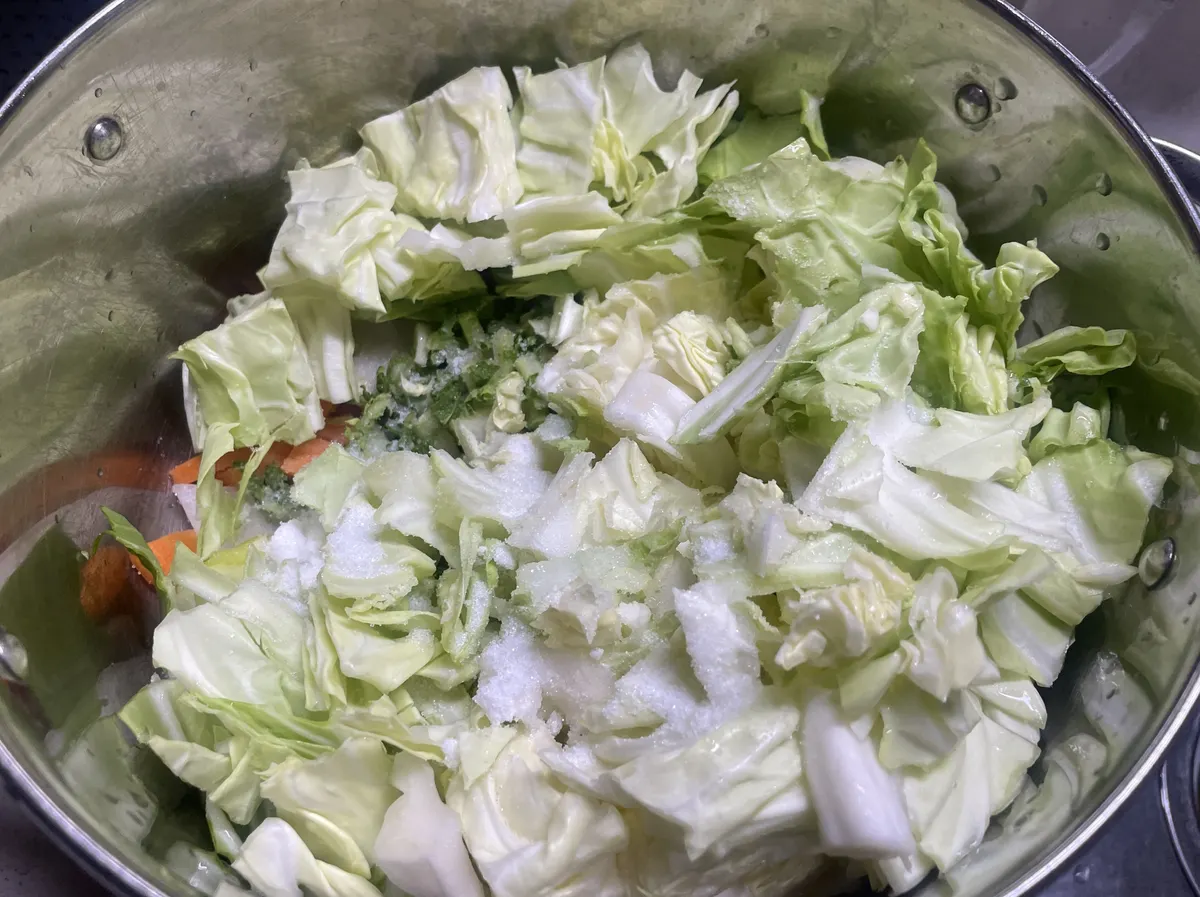 セロリの葉・新玉以外の材料を調味料①の塩揉みして暫く放置ぃ〜😁👍🧂🥬🥕➰🥣✨