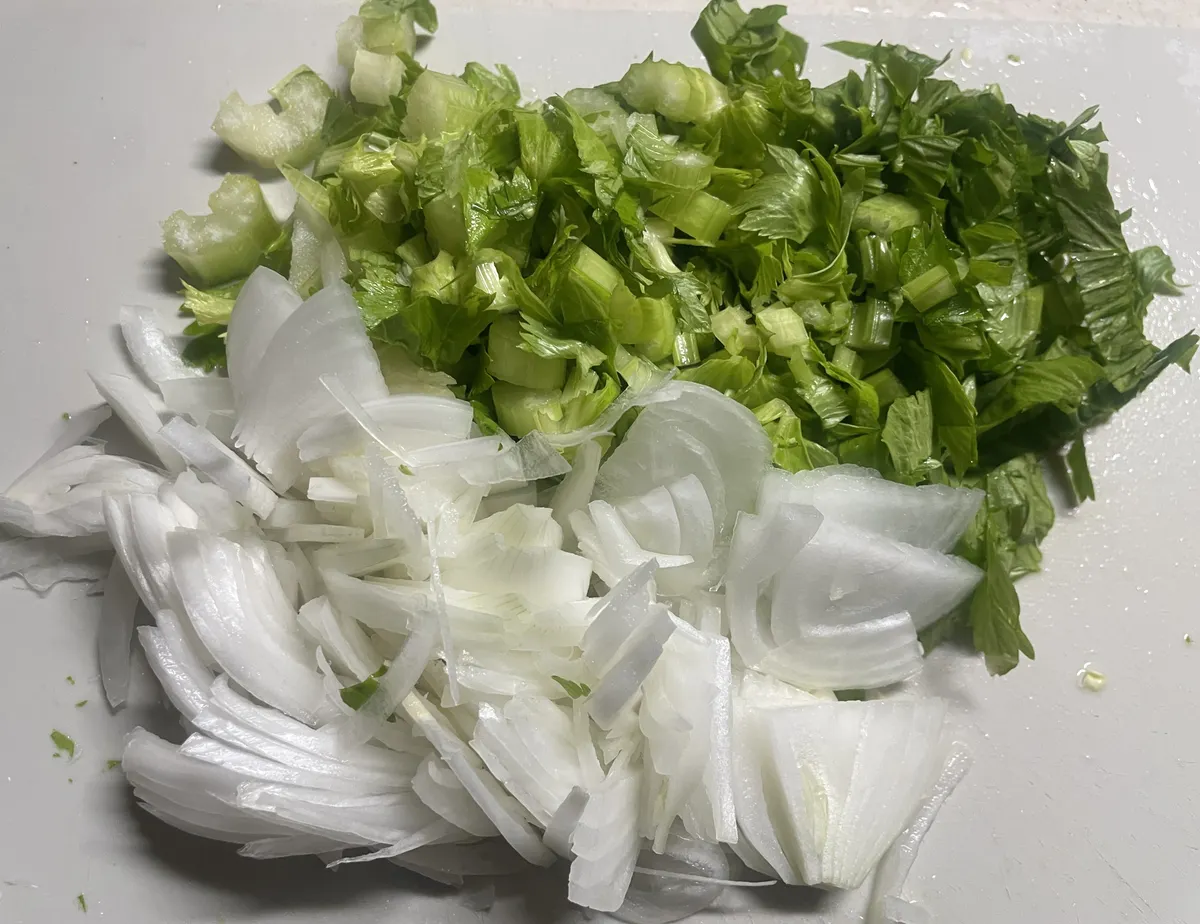 ・セロリの葉・新玉は塩揉みに参加させんかったのは、食感残したかったからぁ〜😬🦷🌿🧅✨