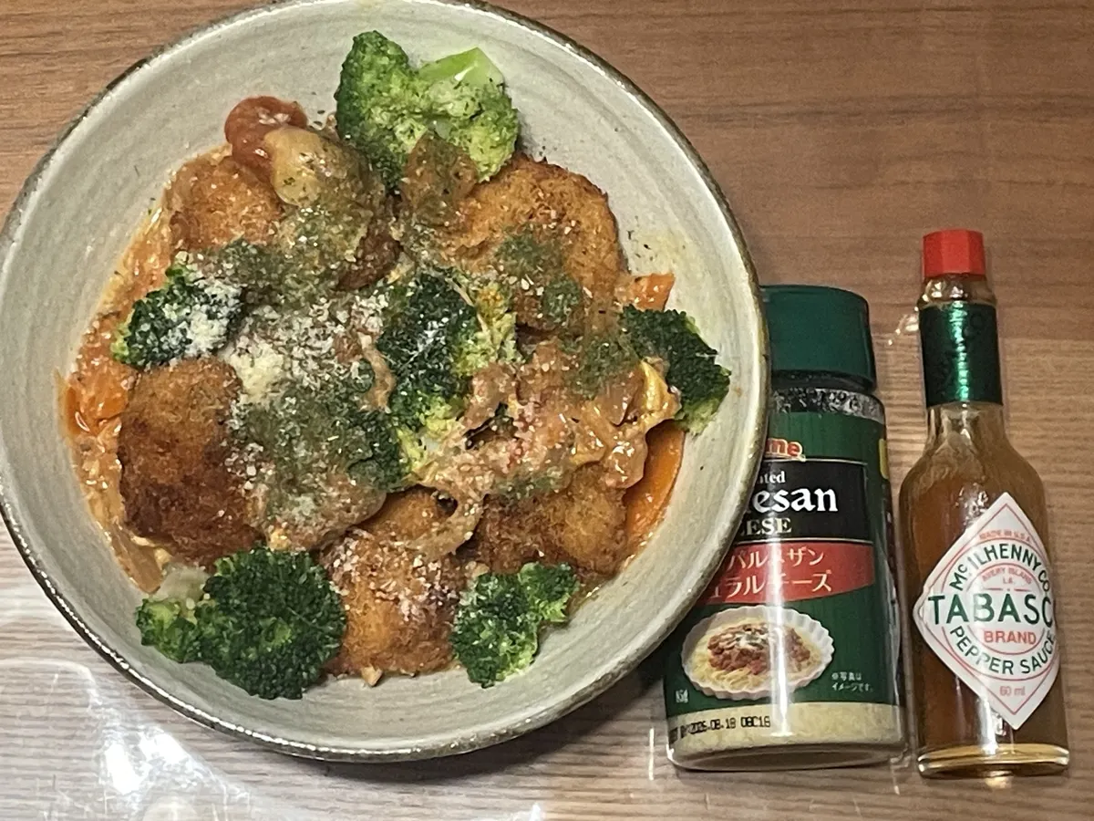投稿を表示チキンカツのトマトピザ風丼が気になる。