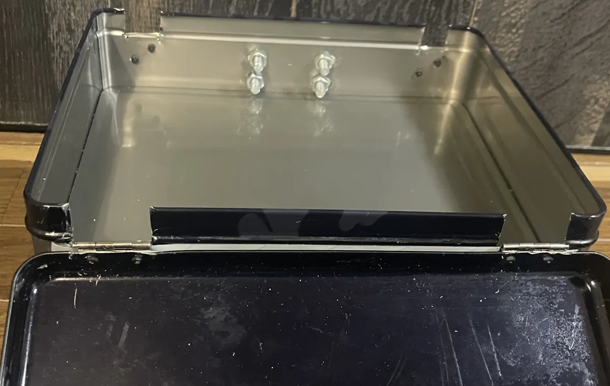 ギフト仕様のお菓子缶を頂いたので、コイツをイカつい縞鋼板トランクケース風にしたよぉ〜っ🤣🙌🗃️➡️🏁🧳✨