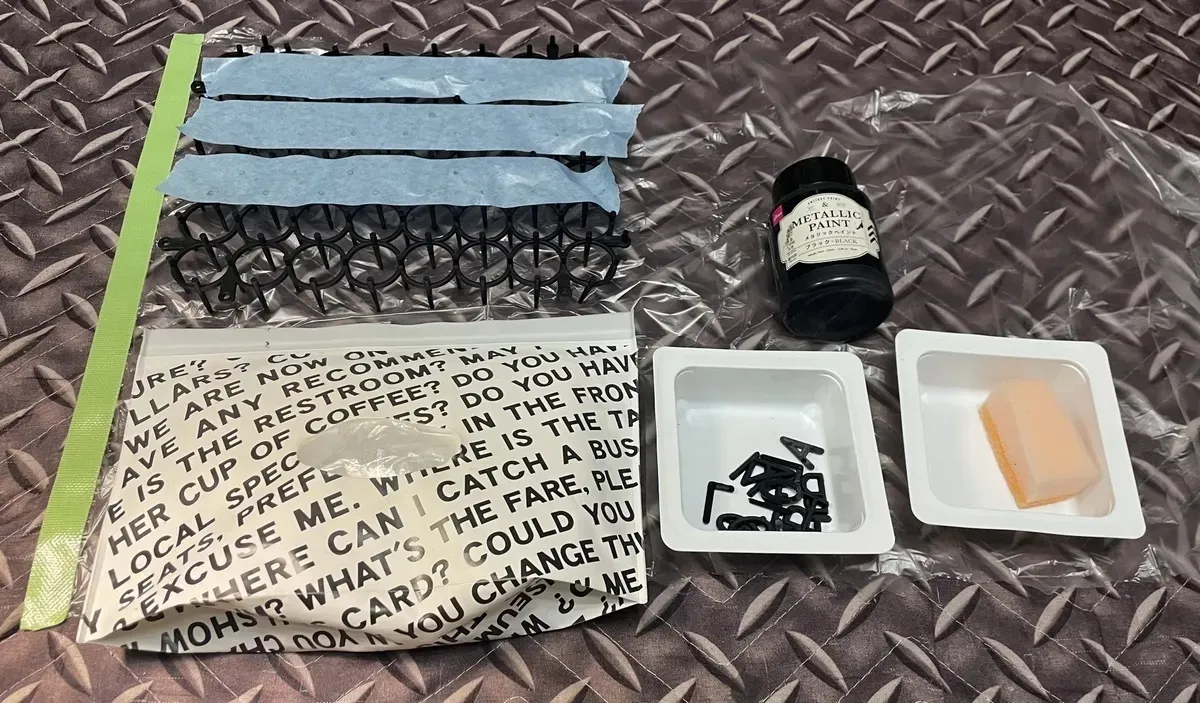 ・表面にスペル付けたいなってんでぇ〜、サインボード用の黒アルファベットを使ったんだけど、樹脂の光沢が気に喰わなくて地味に態々マットにしたいが為、アイアンペイント塗ったったぁ〜🤣🙌🫙🖤✨