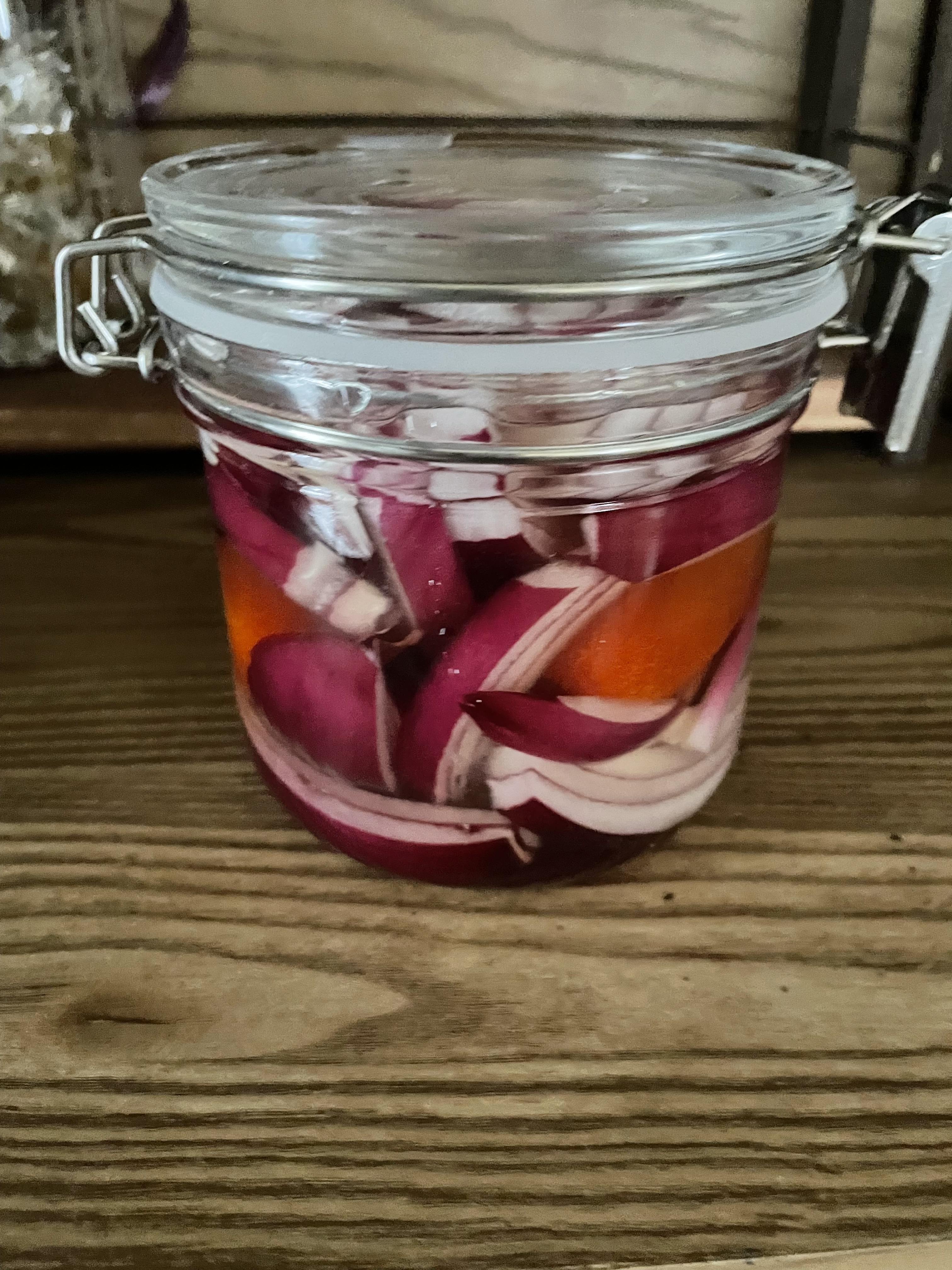 トップ > クッキング > 料理 > ピクルス🧅 ココロ 2025/11/08 16:29 ピクルス🧅 赤い玉ねぎとトマトをピクルスにしました。 切って漬けただけですが😊 べんり酢が簡単で早い♡ 甘めなので少しリンゴ酢を足しました いいね 共有する 共有する X LINE リンクをコピー コメントする 2 件の返信 (新着順) ミュートしたユーザーの投稿です。 投稿を表示 あいぼん 2025/11/08 23:24 ピクルス💡いいですね~👍️ いいね 返信する ミュートしたユーザーの投稿です。 投稿を表示 ココロ 2025/11/09 13:30 あいぼん 身体にも良く漬物みたく美味しいですよね😋 いいね 返信する ミュートしたユーザーの投稿です。 投稿を表示 べるん 2025/11/08 17:20 綺麗な色合いですね。 トマトのピクルスも良いですね~🎶 どちらも止まらなくなりそうです🤭 いいね 返信する ミュートしたユーザーの投稿です。 投稿を表示 ココロ 2025/11/09 13:31 べるん ありがとうございます😊 1日でパリパリ美味しいです♡ いいね 返信する