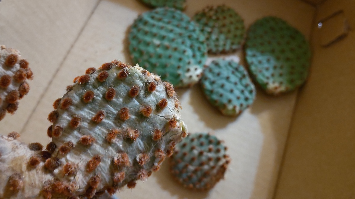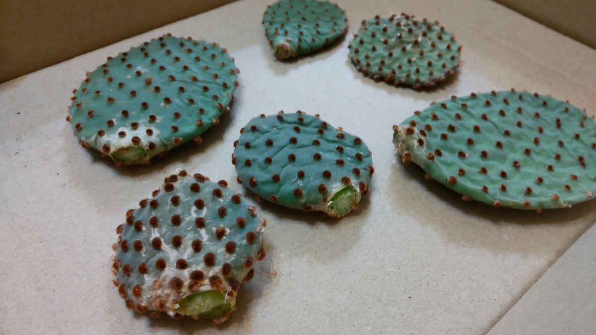 ウチワサボテンの金烏帽子(キンエボウシ)。