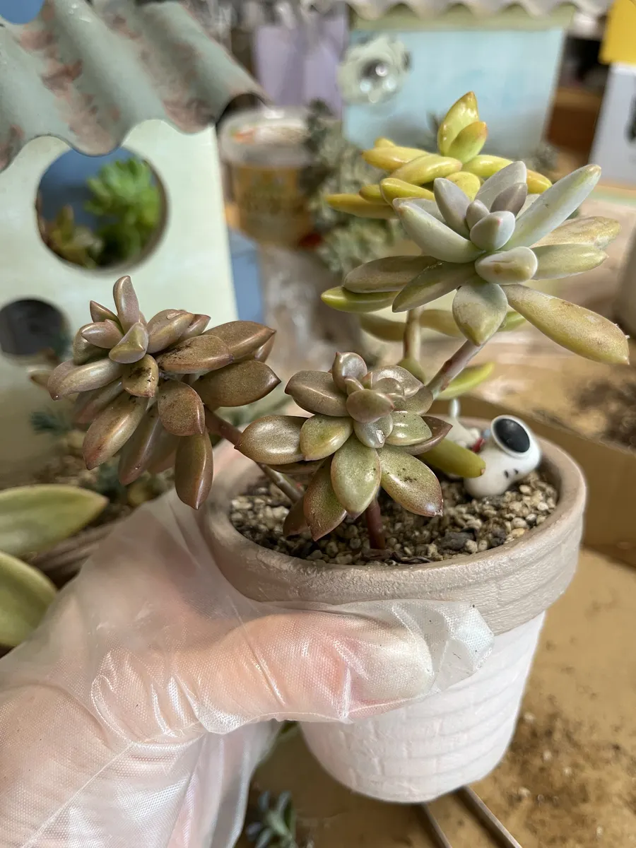 トップ > グリーン > 多肉植物・サボテン > ブーツ型の鉢に徒長した多肉を寄せ直し🍀*゜ まるちゃん 2025/12/04 18:42 ブーツ型の鉢に徒長した多肉を寄せ直し🍀*゜ 夏の間に徒長しちゃった多肉さん達を寄せ直しました·͜· ꕤ︎︎ 徒長してるのとなんか黒いのがついてる😅首チョンパしました😅こちらも首チョンパしました🫠他の鉢のセダムも合間に入れて仕上げました✋ おうちグリーンを楽しもう まるちゃんガーデニング 花のある暮らし 緑のある生活 多肉植物初心者🔰 寄せ直し いいね 共有する 共有する X LINE リンクをコピー コメントする 1 件の返信 (新着順) ミュートしたユーザーの投稿です。 投稿を表示 さくら♡ 2025/12/04 23:44 まるちゃんさんは白いブーツに寄せ植えされたんですね💕 いいね 返信する ミュートしたユーザーの投稿です。 投稿を表示 まるちゃん 2025/12/05 17:54 さくら♡ はい·͜· ꕤ︎︎ 枯らしたまんまちょっと放置してた鉢で😅 やっと植えました💕 いいね 返信する ミュートしたユーザーの投稿です。 投稿を表示 さくら♡ 2025/12/05 18:09 まるちゃん 可愛くなりましたね😊 いいね 返信する ミュートしたユーザーの投稿です。 投稿を表示 まるちゃん 2025/12/06 15:56 さくら♡ ありがとうございます😊 いいね 返信する
