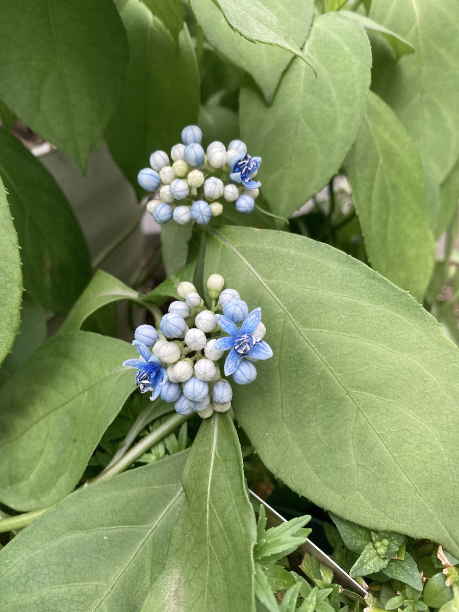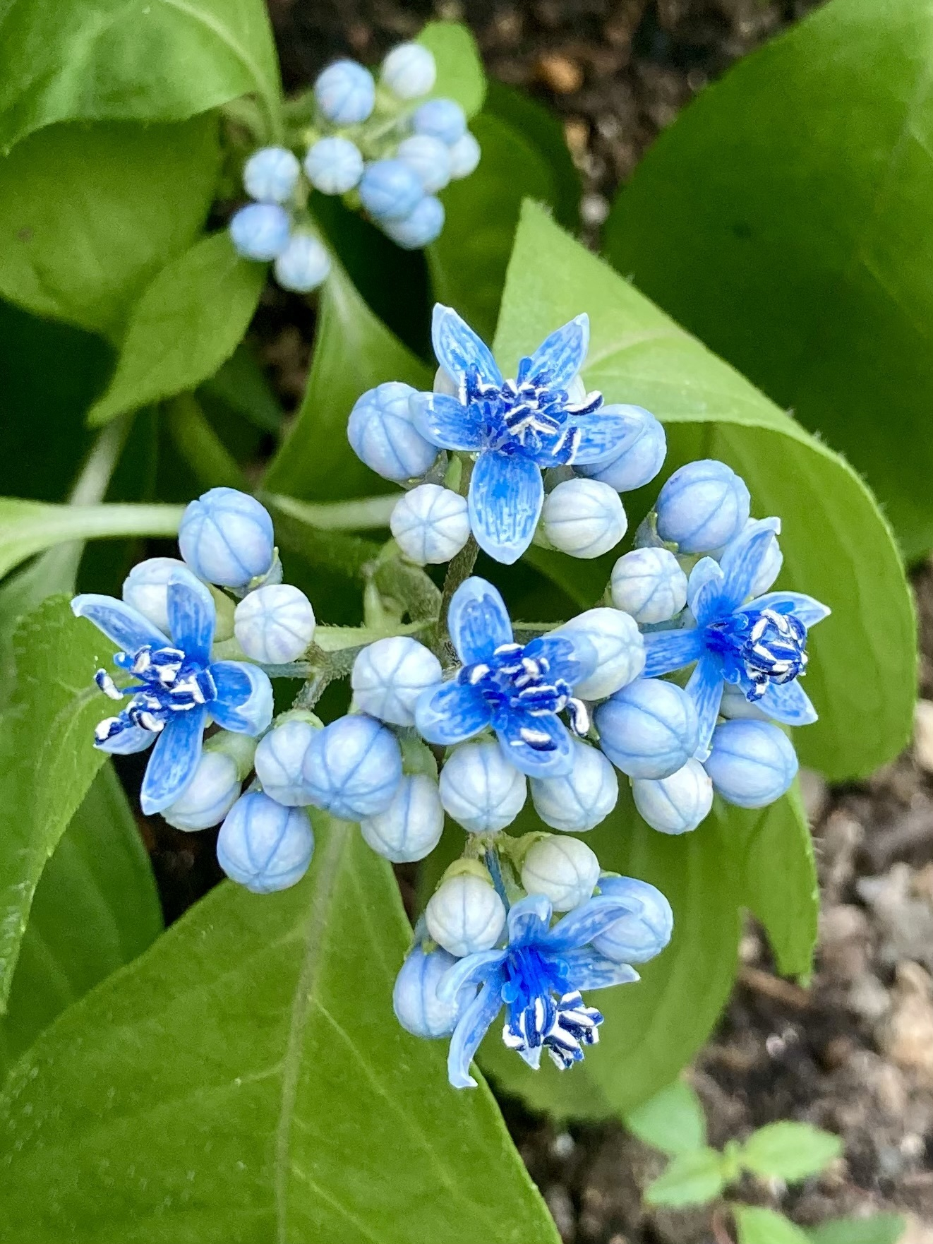 常山アジサイの青い色がお気に入り。別名碧のひとみ。丸い蕾もコロコロしてて可愛い。