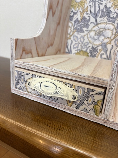 引き出しの組み立て時のビスが気になって、余ったシートを貼って、ビスを隠しました✨