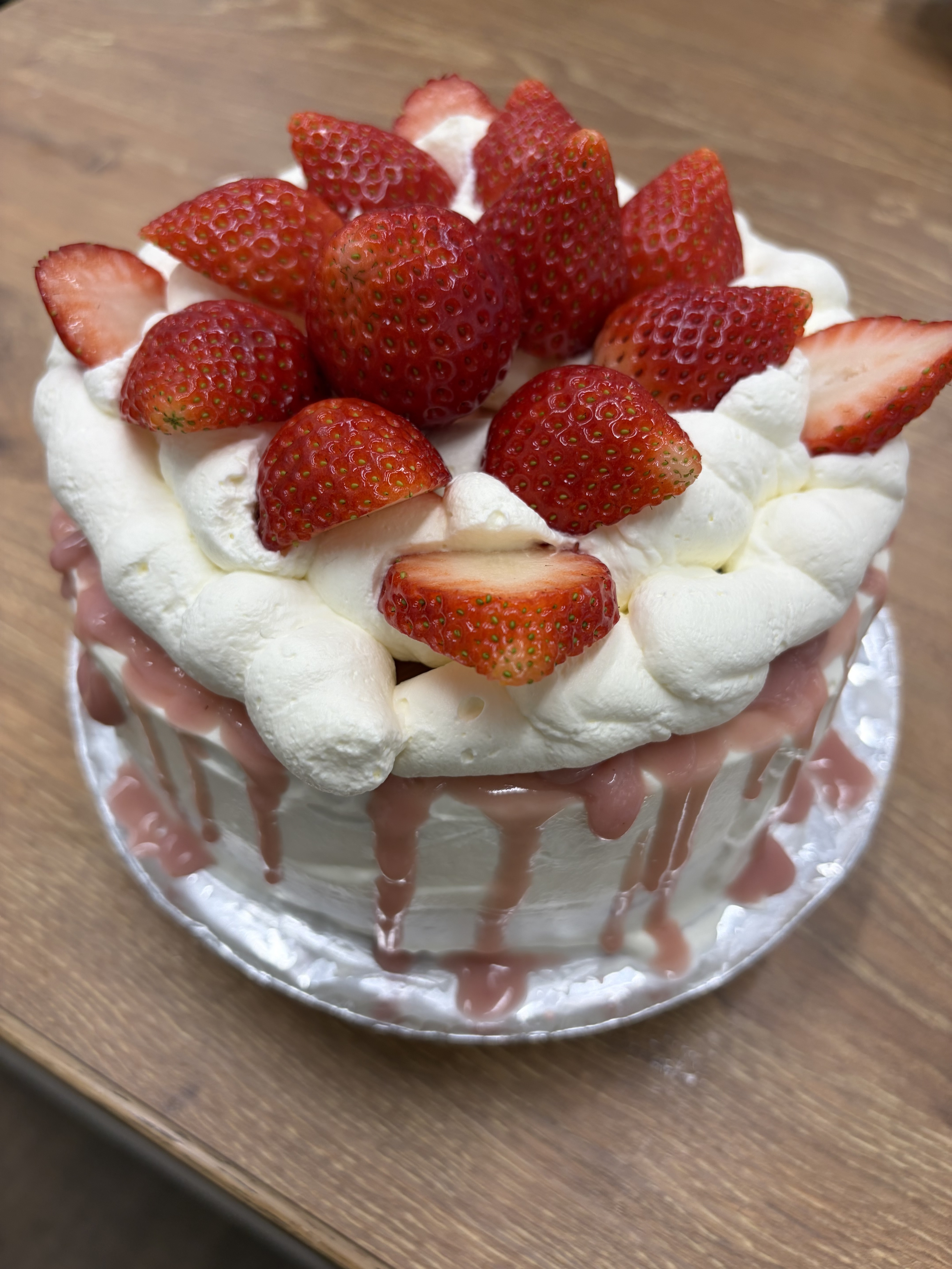 手作りのドリップイチゴケーキとても美味しそうですね。😋🍴💕